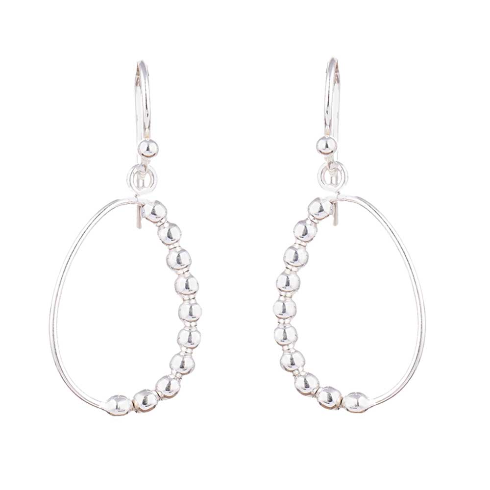 One Sided Silver Beads 92.5 Sterling Silver Hoop earrings