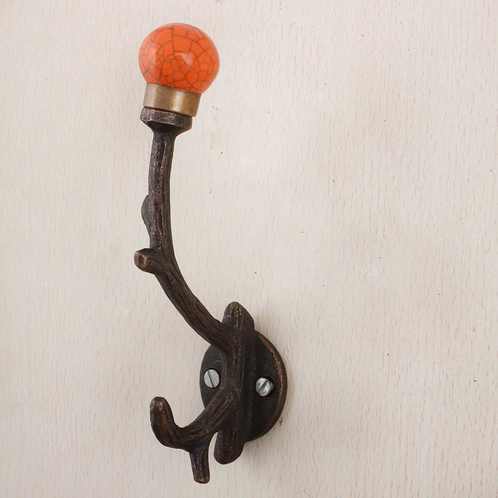 Orange Crackle Tree Hook-Ehg-84. When Put on Wall or Cabinet It Gives A Sturdy Look. This Hook is Strong Enough to Hold Your Cloths, Keys, Tea Cups, Coffee Mugs, Hand Towels Etc.