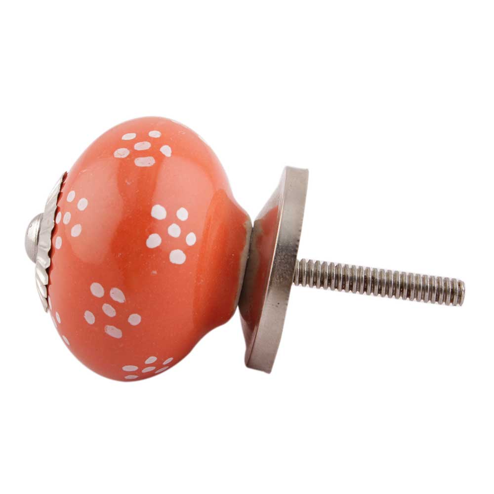 Orange Dotted Ceramic Floral Wardrobe Knobs Online