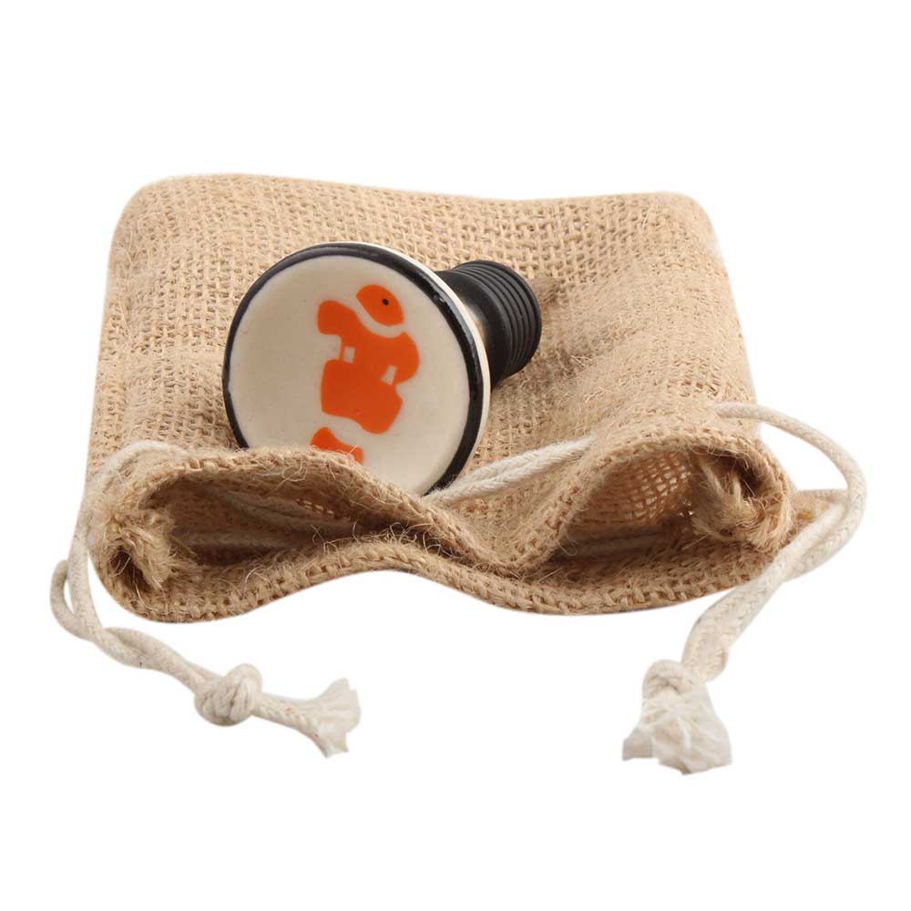 Orange Fish Flat Ceramic Wine Stopper.zinc alloy wine bottle stopper with attractive Jute Bag Packaging.