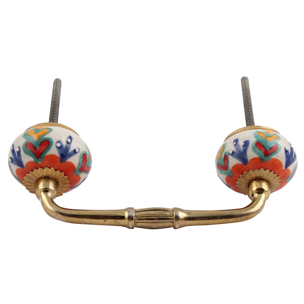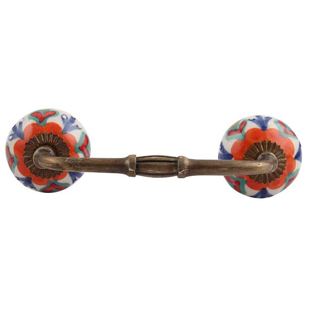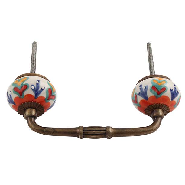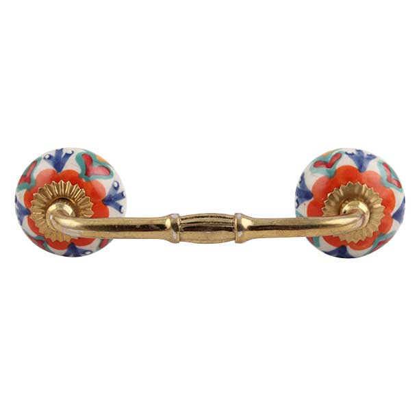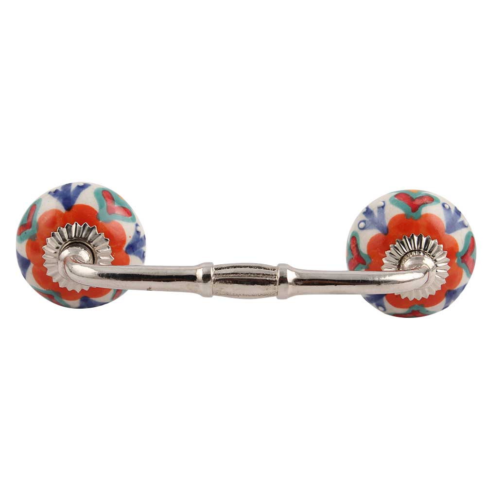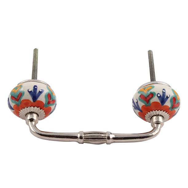 Indianshelf.com for bulk/wholesale orders.Indianshelf.us for personal purchases.The Orange Flower Ceramic Floral Bridge Handle adds a splash of color and sophistication to any furniture piece. Showcasing a beautifully crafted orange flower design, this handle infuses a refreshing and lively element into your cabinets, drawers, and doors. Its detailed floral pattern is ideal for enhancing both classic and contemporary interiors.