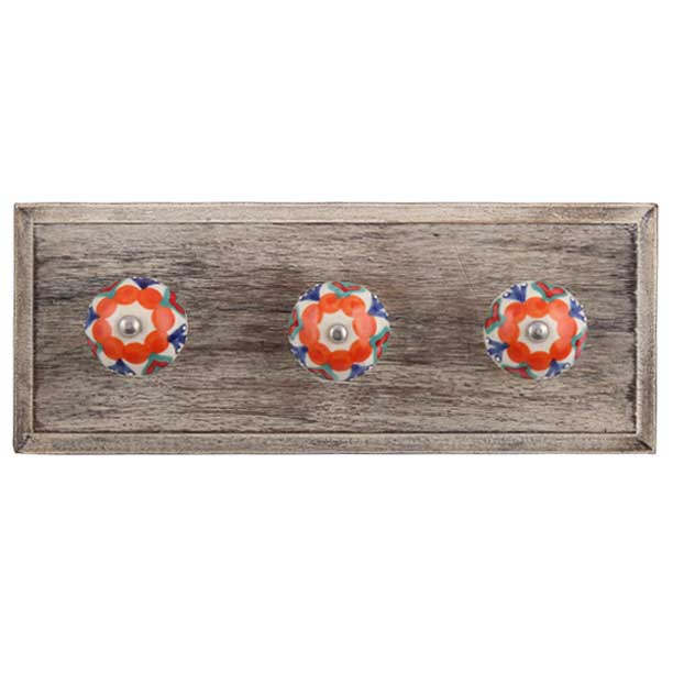 Orange Flower Ceramic Floral Wooden Hook. A Perfect Complement to the Soft Tone of the Wood are these White Traditional Hat & Coat Hook Made of Genuine Porcelain and Brass. It can be use to Hang Jewellery, Leashes, Towels, Scarves, Light Weight Sweaters, Caps Etc.