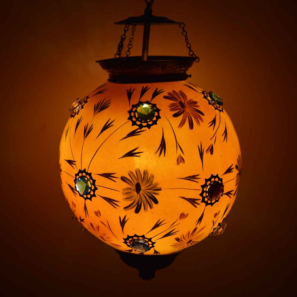 Orange glass hanging globe lamp