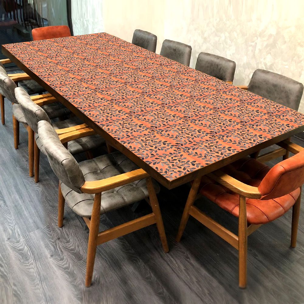 Buy an exquisite handmade table top online that is made of wood, acrylic, and resin. With its captivating peach-coloured background adorned with elegantly designed leaf patterns in grey, this table top is a true work of art. It is handcrafted by skilled Indian craftsmen, it embodies the essence of traditional artistry and attention to detail. Versatile and visually appealing, this table top can effortlessly enhance the décor of your dining room, coffee table, console table, or even nesting tables. Its high-quality construction ensures durability and longevity, making it a valuable addition to any space. Whether it's for your home, office, restaurant, or hotel, this table top is bound to be a conversation starter and a focal point in any setting. Additionally, this remarkable piece doubles as a unique and eye-catching gift for your loved ones on special or festive occasions. Available in both circular and rectangular shapes, it provides versatility in decorating your home while exuding elegance and charm. Transform your living spaces with this extraordinary table top that seamlessly combines artistry, functionality, and sophistication.