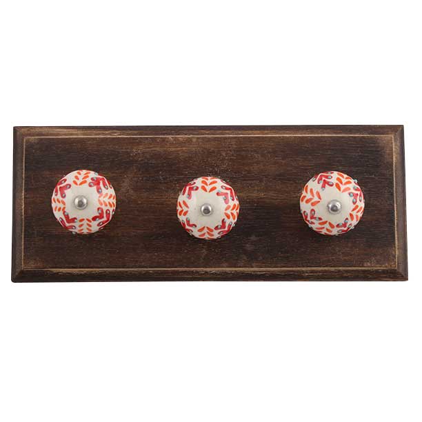 Orange Leaf Ceramic Floral Wooden Hook. A Perfect Complement to the Soft Tone of the Wood are these White Traditional Hat & Coat Hook Made of Genuine Porcelain and Brass. It can be use to Hang Jewellery, Leashes, Towels, Scarves, Light Weight Sweaters, Caps Etc.