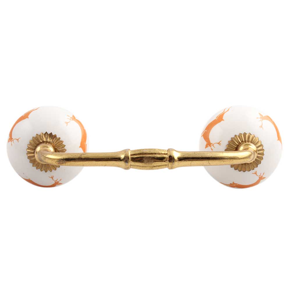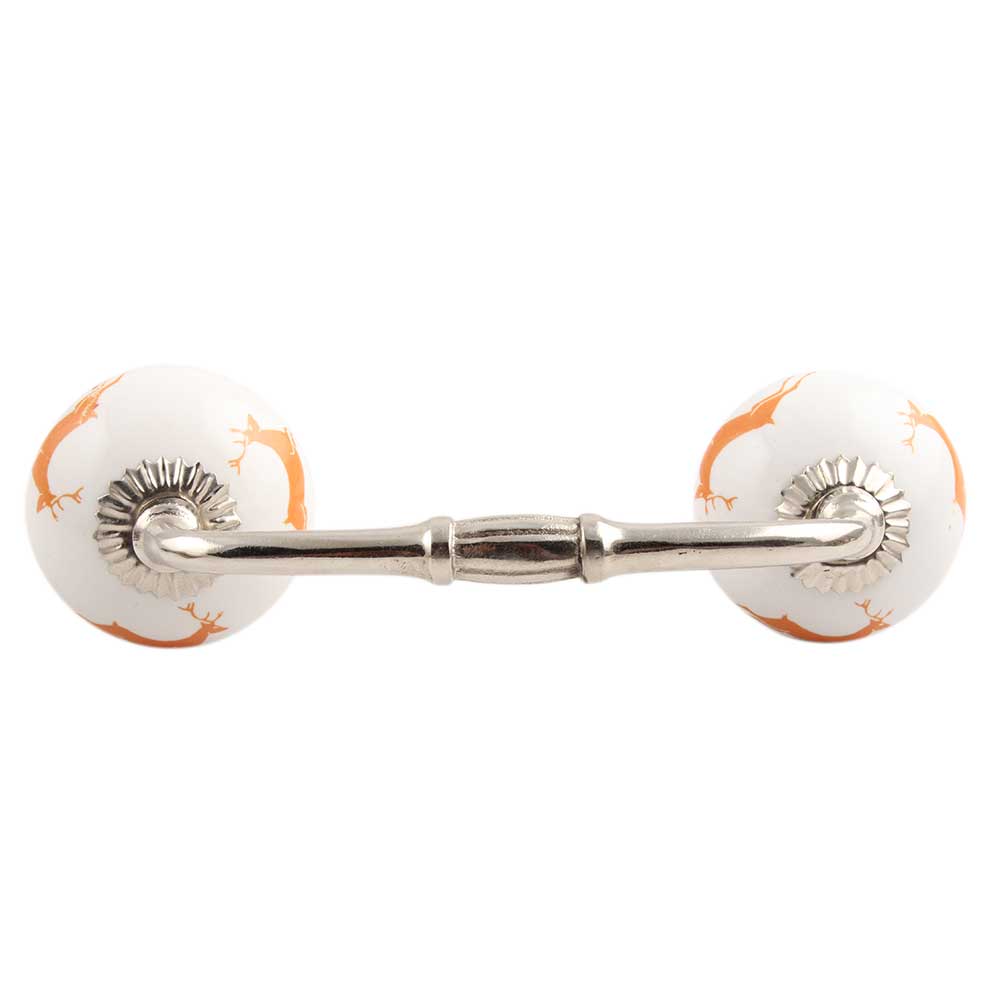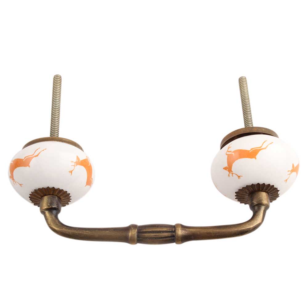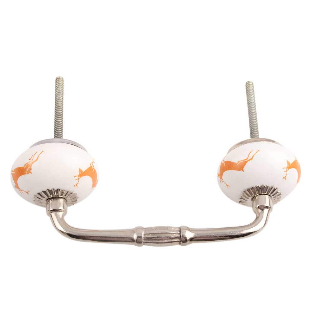 Orange Running Rein Deer Pattern Ceramic Bridge Handle. Ideal for Drawer, Dresser, Cabinet, Wardrobe, Cupboard and Almirah.