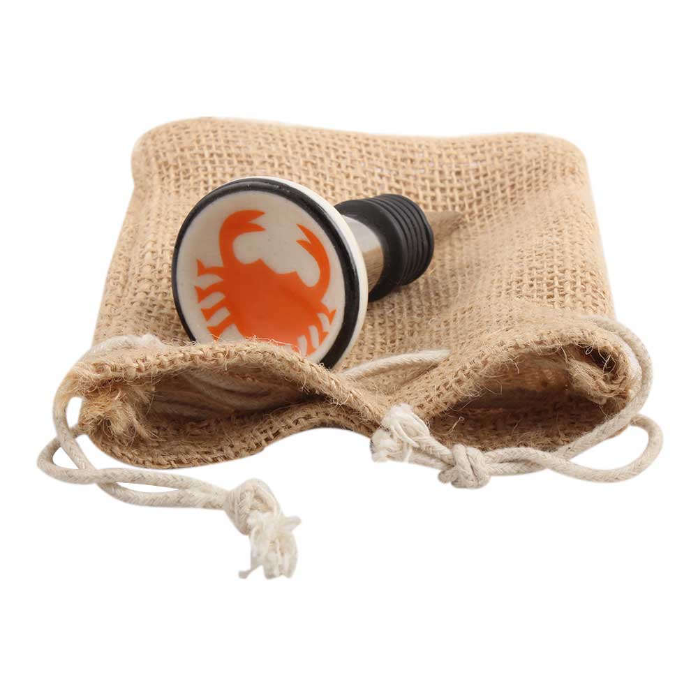 Orange Scorpion Flat Ceramic Wine Stopper.zinc alloy wine bottle stopper with attractive Jute Bag Packaging.
