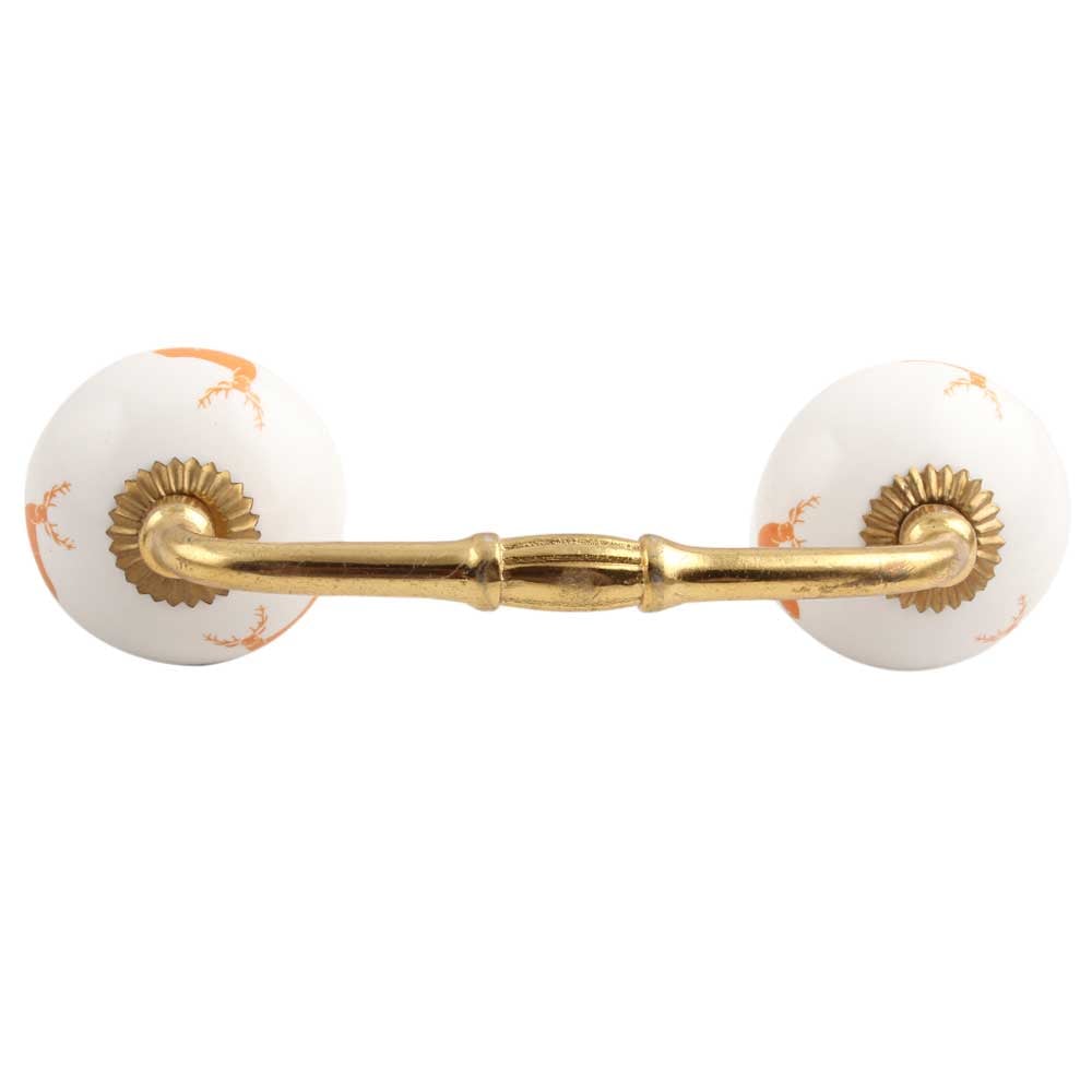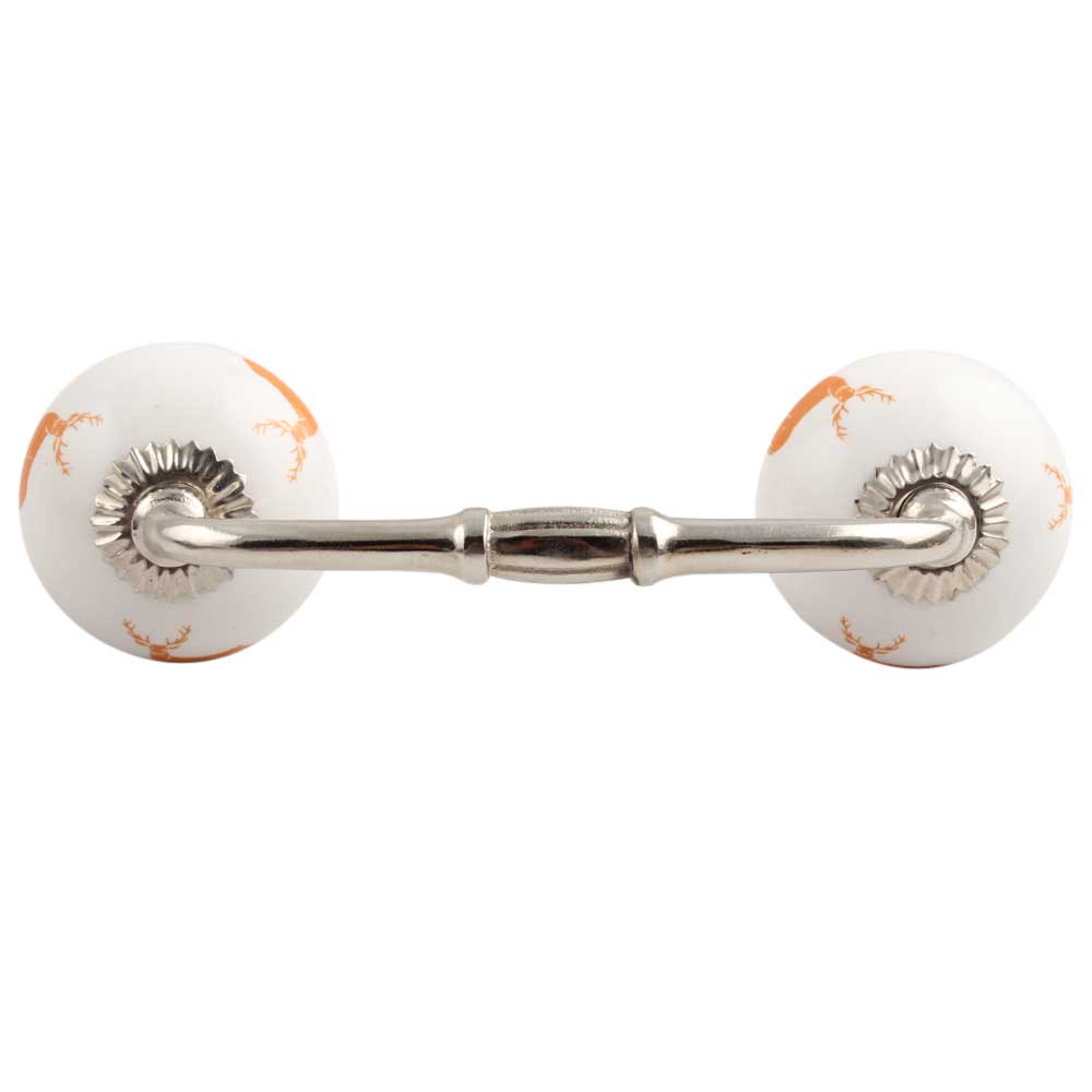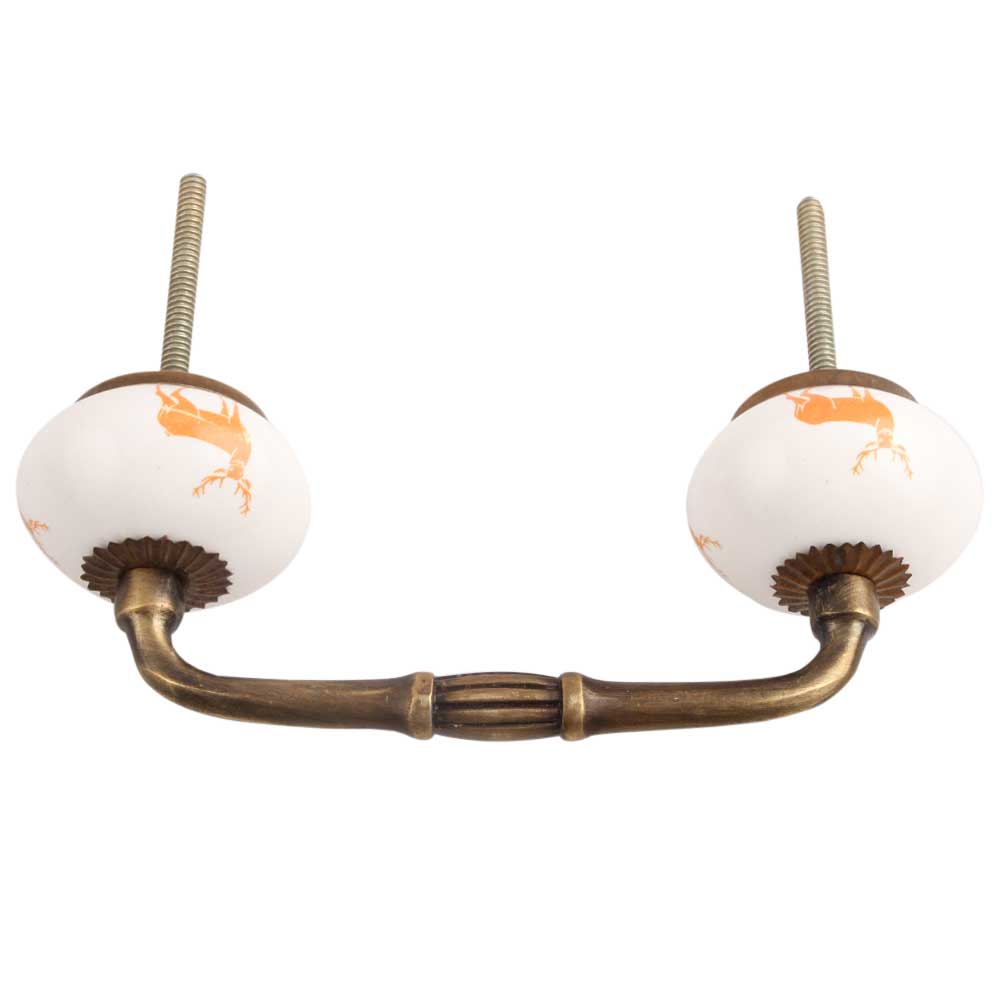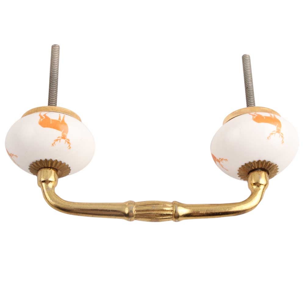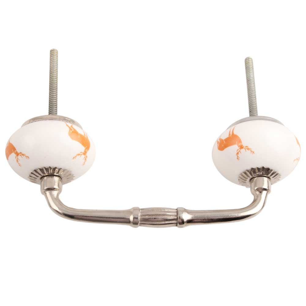 Orange Standing Rein Deer Pattern Ceramic Bridge Handle. Ideal for Drawer, Dresser, Cabinet, Wardrobe, Cupboard and Almirah.