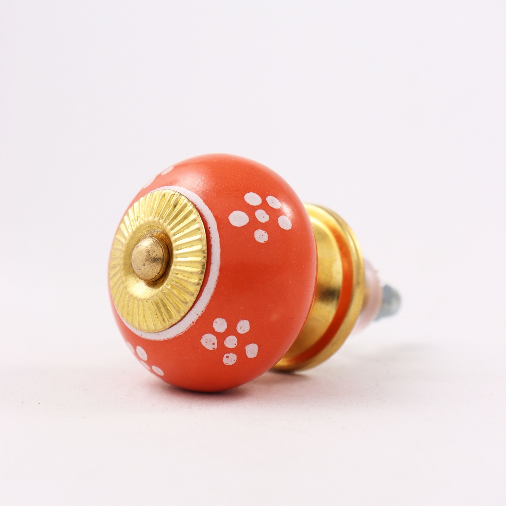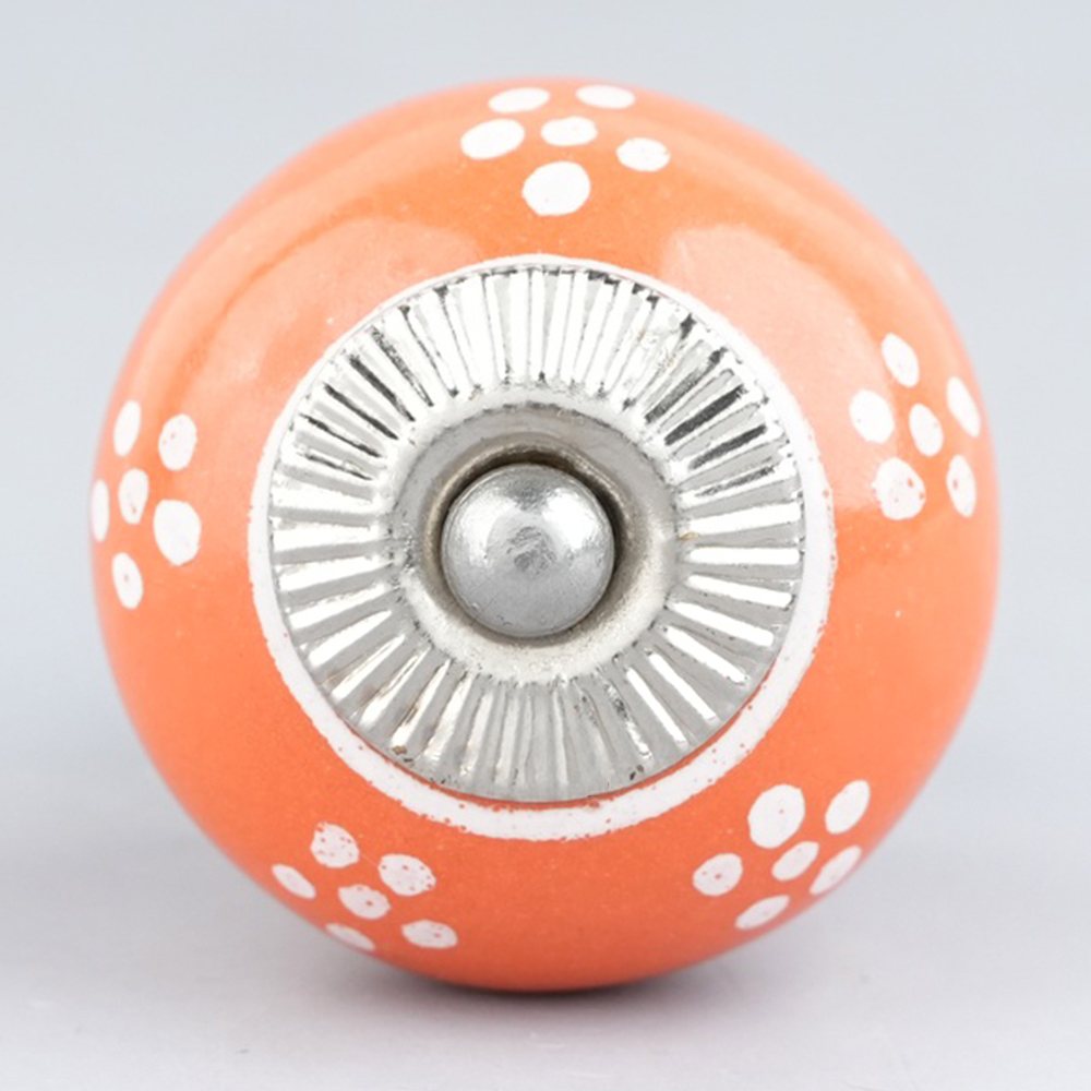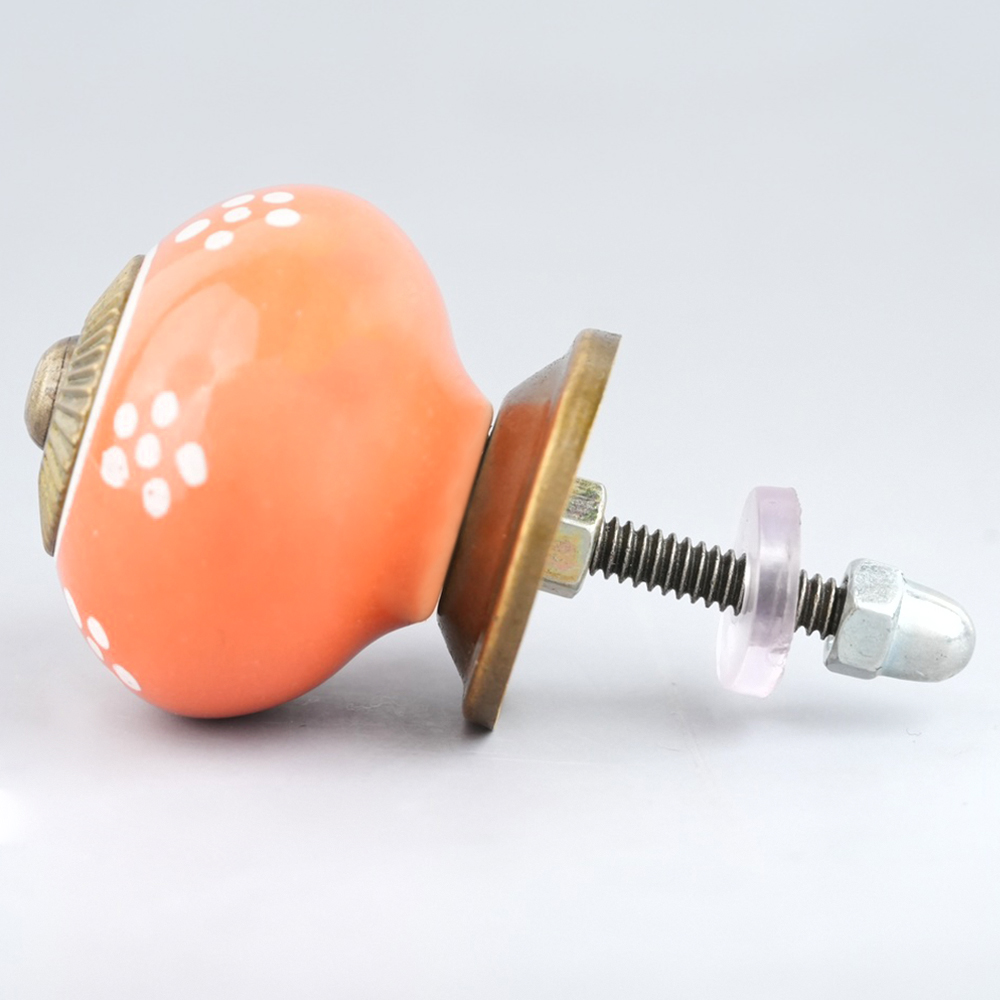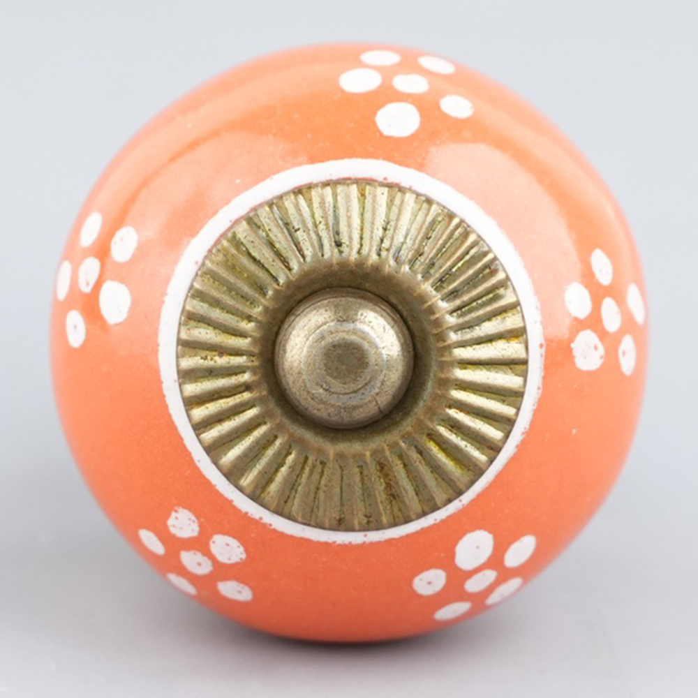 With included standard screw fittings, the Orange Tiny Floral Ceramic Knob is easy to install, allowing you to quickly transform the look of your furniture. Whether you are refreshing your dresser, updating your bathroom, or replacing old hardware, this knob offers a quick and effective way to add a pop of color and personality.