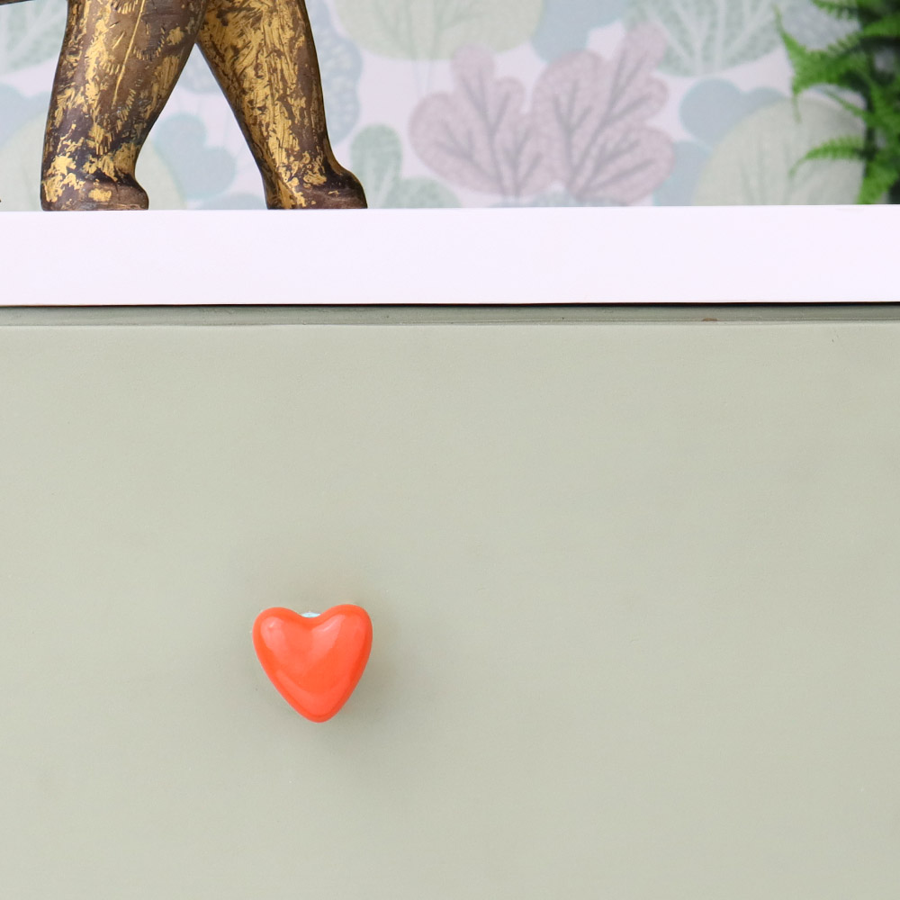 If your style leans towards the bohemian, eclectic, or fun-loving aesthetic, these tiny heart-shaped knobs are a great fit. Their bright orange color and sweet design add to the carefree vibe of any room, pairing beautifully with mismatched furniture and vibrant patterns for a unique, playful space.
