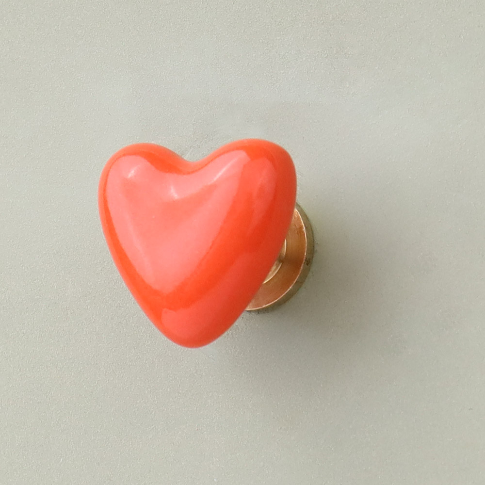 With the included standard screw fittings, the Orange Tiny Heart Ceramic Cabinet Knobs are easy to install on most furniture pieces. Whether you're upgrading an old dresser or adding a new look to a kitchen or bathroom, these knobs provide an effortless way to make a fun, colorful statement with minimal effort.