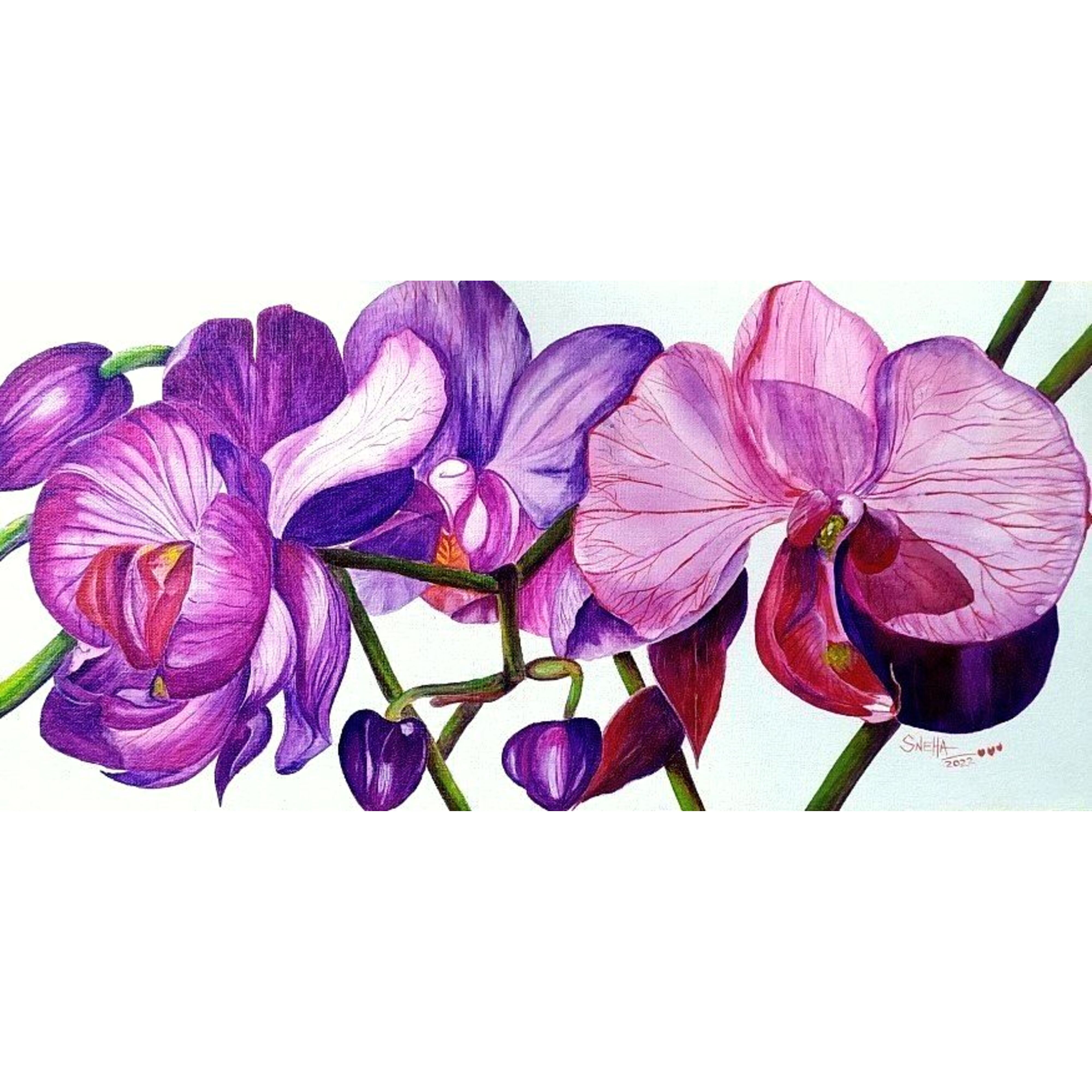 • Orchid Flowers Canvas Painting by Artist Snehaprava Maharana