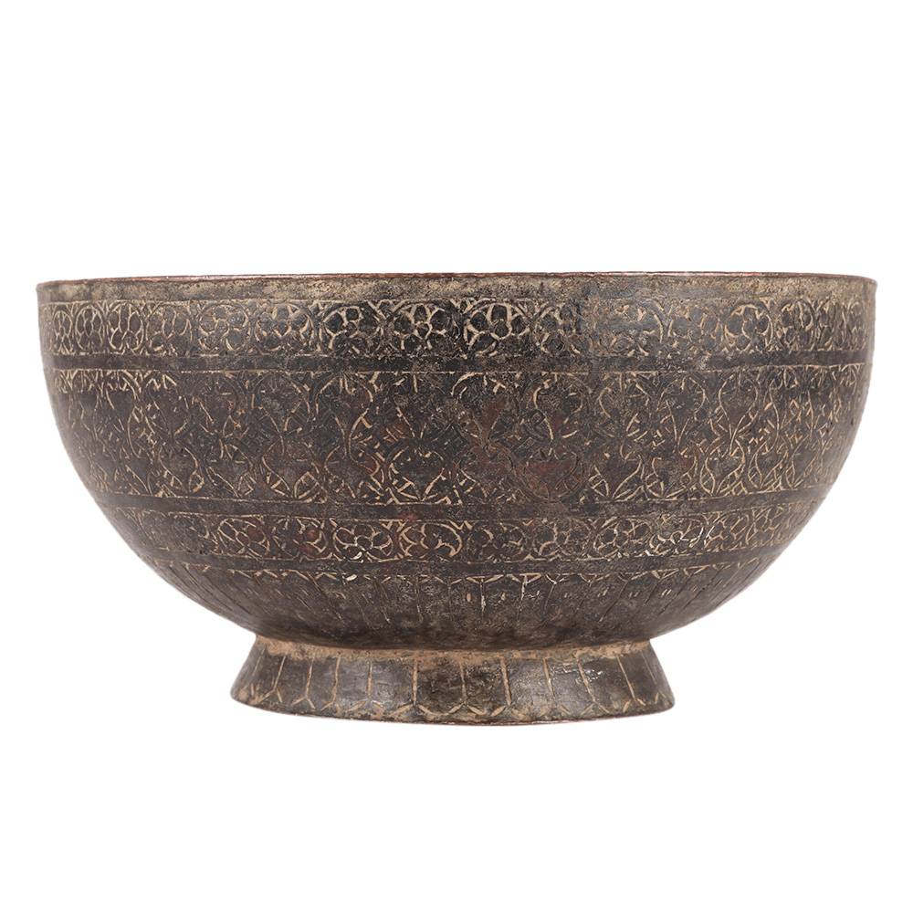 Exclusive brass bowl with beautiful floral print and vine etched in exquisite moghul style by professional artisans using traditional tools and methods. Use it as a table decoration, a showpiece, or a corporate gift.