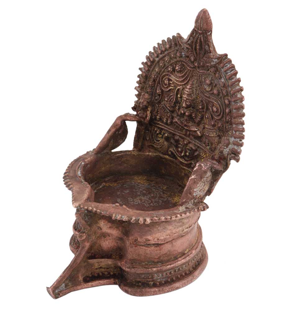 Ornate Brass Laxmi Oil Lamp Goddess Laxmi Motif And Two Elephants