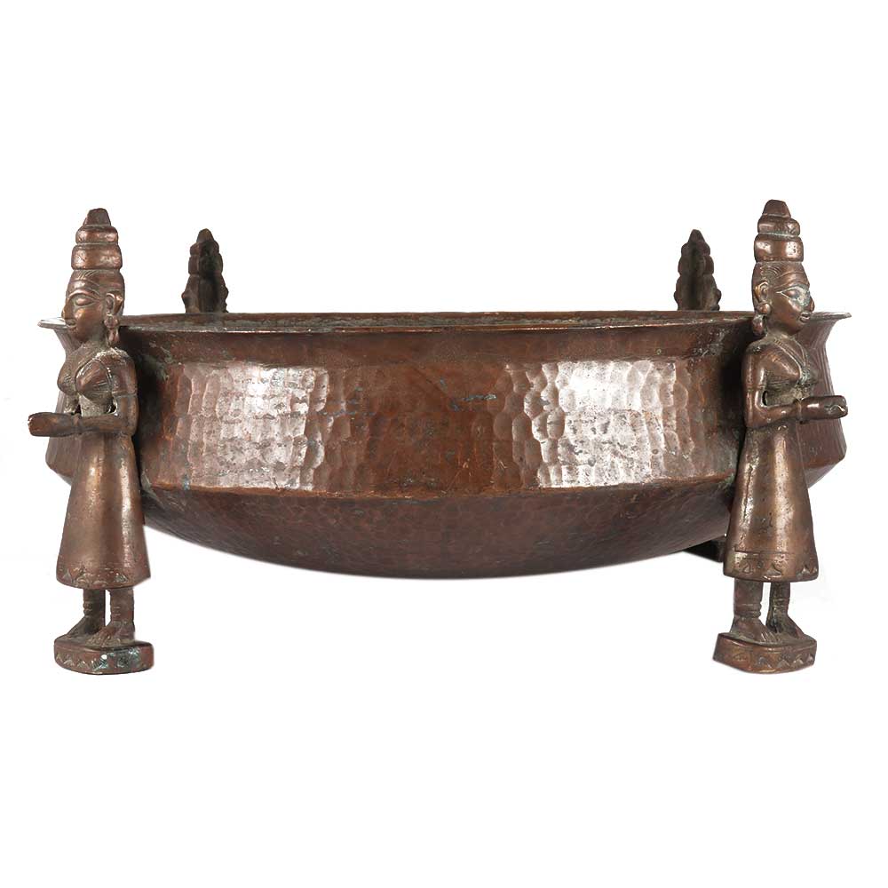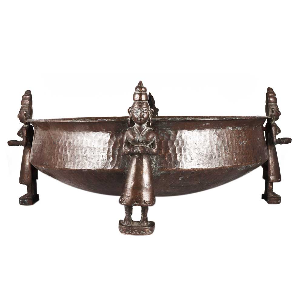 • Ornate Copper Bath Bowl With God Figurines