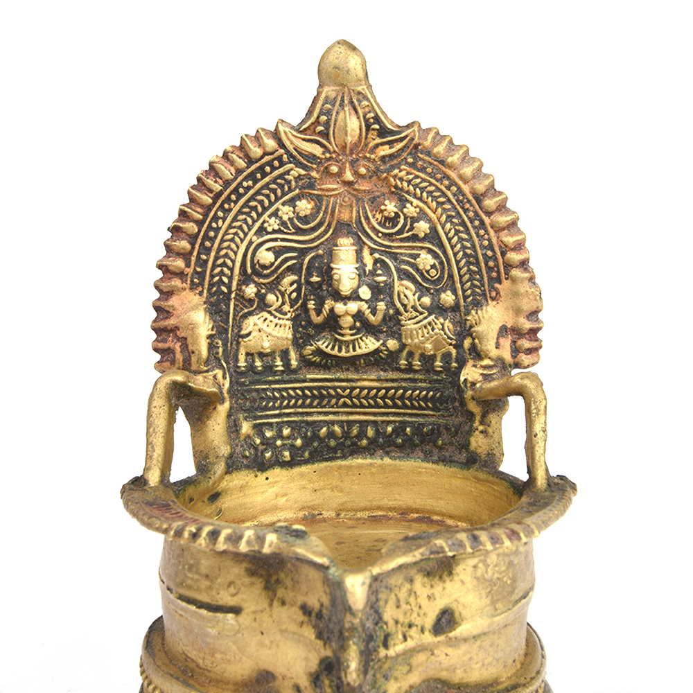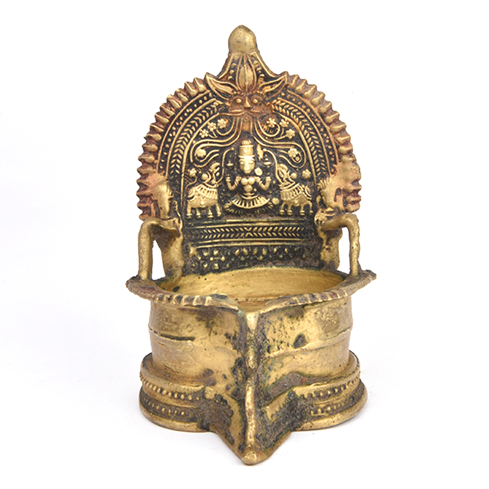 Ornate Gaja Lakshmi Bronze Oil Lamp