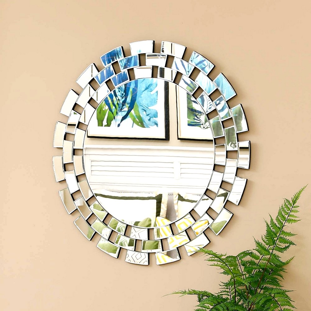 Infuse your interiors with elegance through this clear glass mosaic frame mirror featuring a radiant circular design crafted with layered geometric tiles. Its reflective brilliance and handcrafted precision make it a timeless accent for any décor. Packed & quality-checked by Indianshelf.