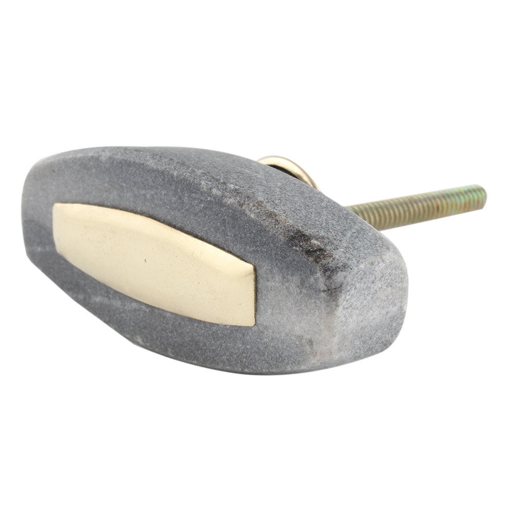 Crafted with precision, the Oval Grey Stone with Brass Plates Knobs feature a smooth, polished grey stone center complemented by sturdy brass plates. This combination ensures the knobs are not only visually striking but also built to last. The tactile quality of the stone provides a comfortable grip, while the brass plates enhance durability and provide a sophisticated finish. Perfect for those who appreciate natural materials with a refined touch, these knobs bring elegance to any furniture.
