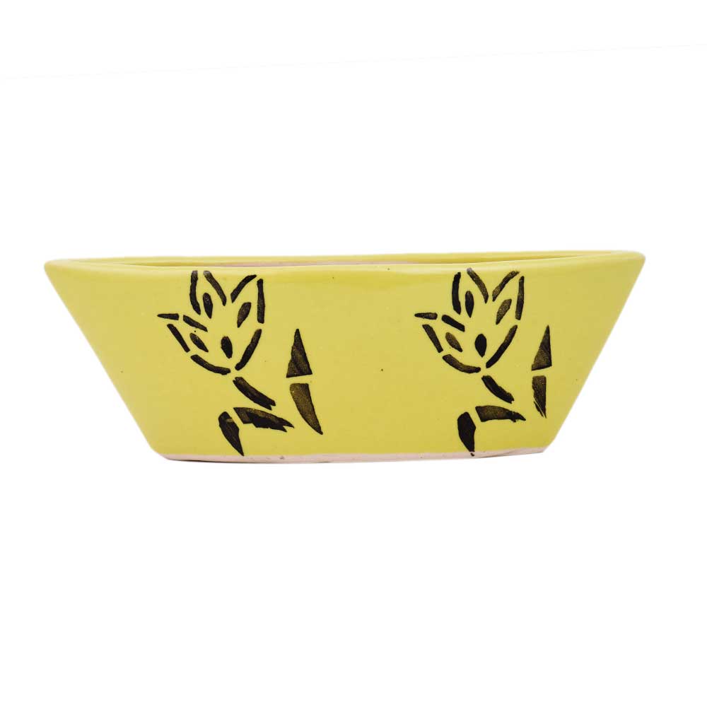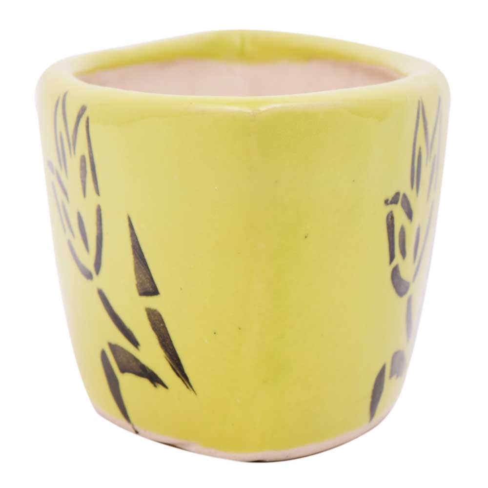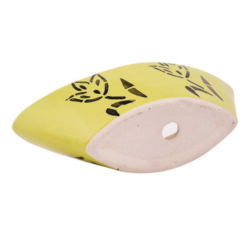 • Oval Shape Yellow Ceramic Pot With Hand painted Black Flowers