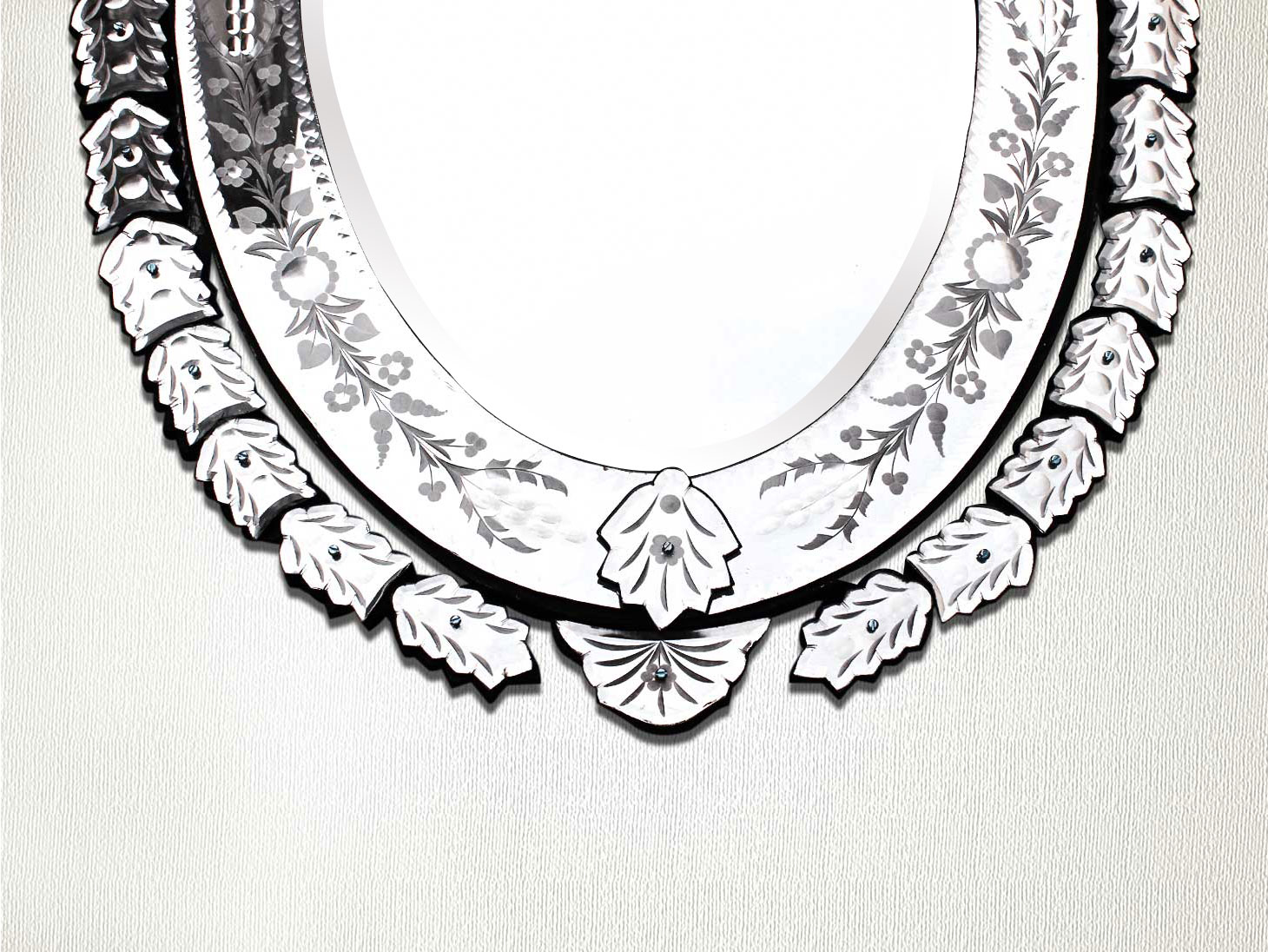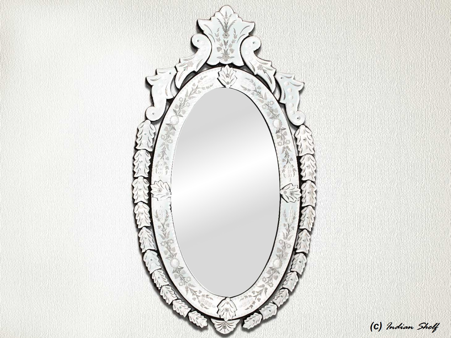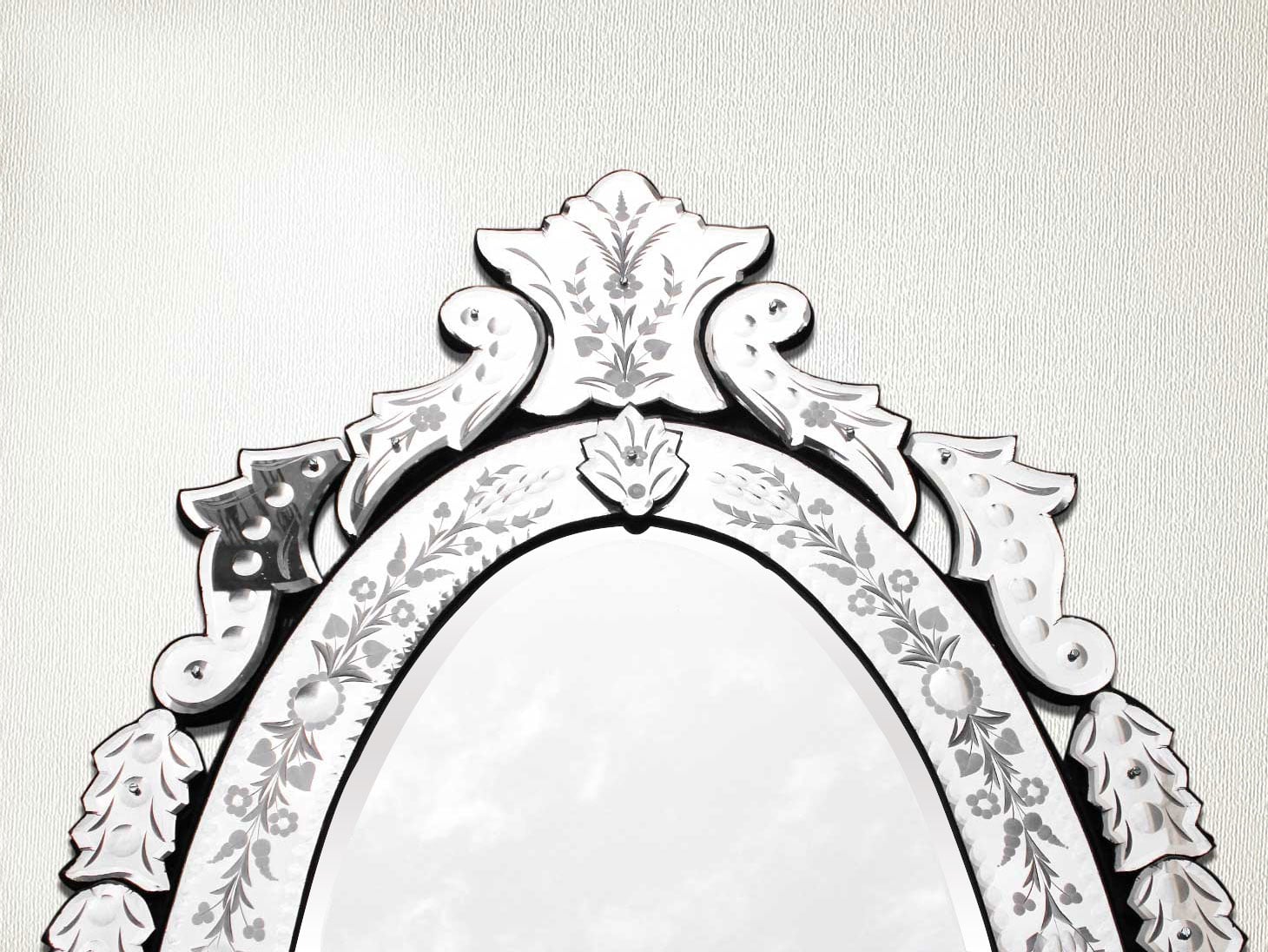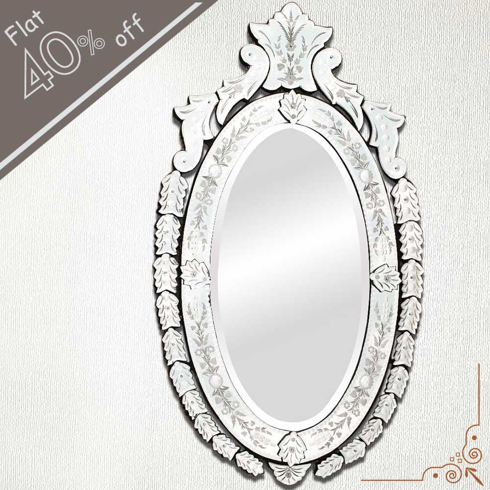Oval Venetian Mirror-42.5 inches X 25 inches.A simple way to incorporate an elegant look into any room is the addition of Venetian mirrors these treasured pieces reflect light and serve as an artistic focal point transforming a room into a glamorous environment with a bit of old world elegance.