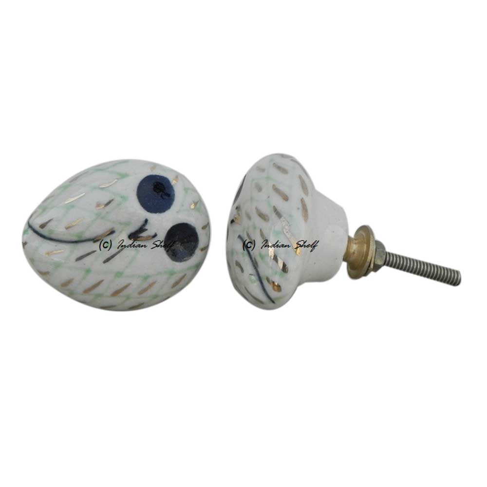 Handmade owl ceramic bird knob is ideal for drawer, dresser, cabinet, wardrobe, cupboard and almirah. This handle and knob is kids friendly with no sharp edges on corner. Washer, nut & screw/bolt included