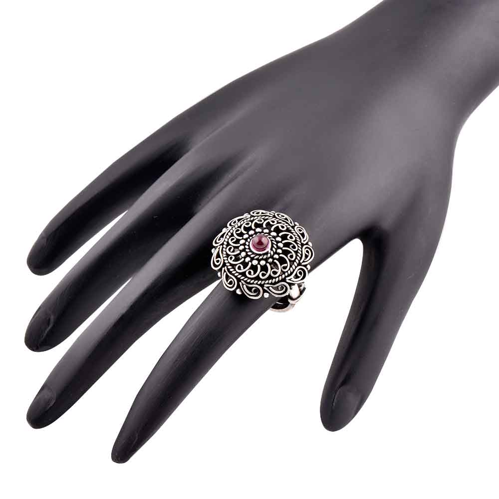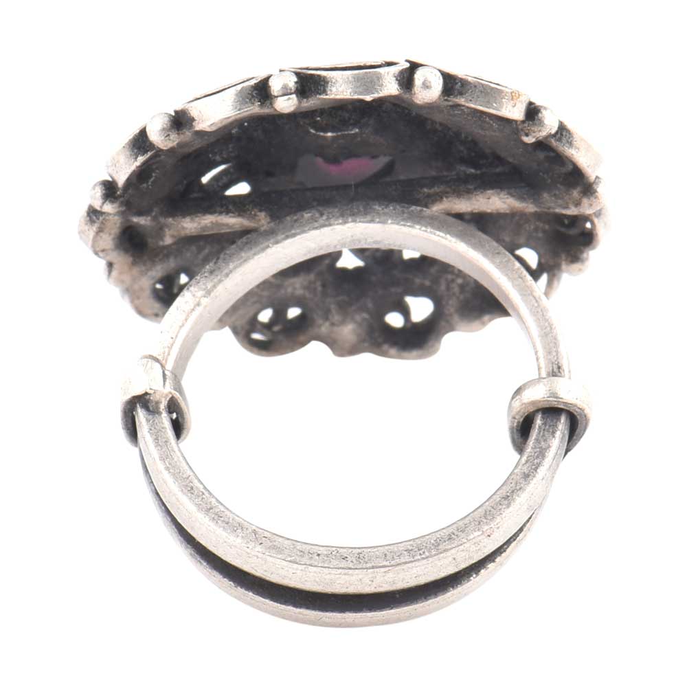 Oxidized 92.5 Sterling silver Ring Adjustable Amethyst Stone Studded Paisley Design (Free Size)