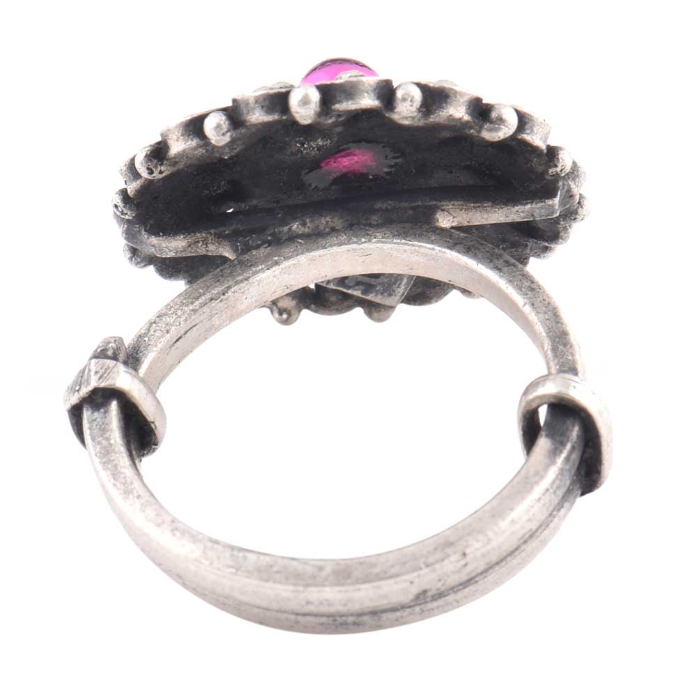 • Oxidized 92.5 Sterling Silver Ring  Adjustable Studded With Amethyst Stone (Free Size)