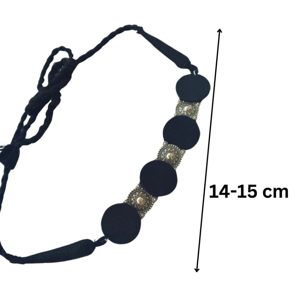 Make a bold yet elegant statement with this black oxidized silver fabric choker. Designed for the modern woman who embraces tradition with a twist, this semi-round choker is perfect for festive occasions, weddings, or everyday wear. With its sleek look and rich materials, it’s both timeless and edgy. Keep moisture away to maintain its allure.