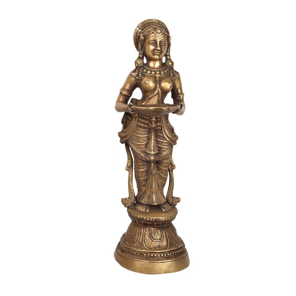 Paavai Vilakku Bronze Lamp in the Form of a Lady Holding Vessel with Her Hands.
