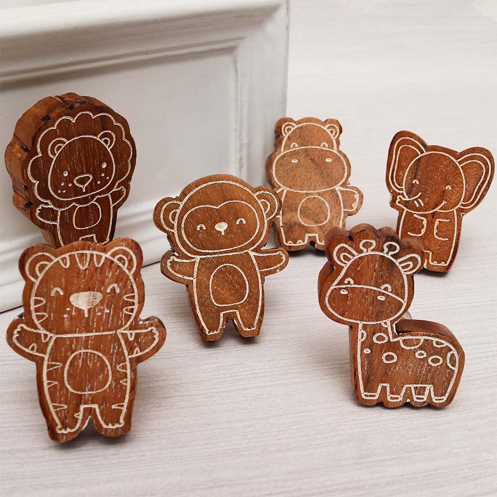 An adorable pack of 6 wooden kids knobs in a charming brown colour! These delightful Cute Dresser Knobs are perfect for adding a touch of whimsy to your little one's room. Crafted with care by skilled artisans from India, these high-quality knobs are made from premium wood, ensuring durability and longevity. Each knob features a different animal design, including a Lion, Bear, Monkey, Hippo, Elephant, and Giraffe, making them irresistible to children. The intricate details and handcrafted finish showcase the artisan’s expertise and add a unique charm to any furniture piece. These versatile Kids Dresser Knobs can be easily installed on cabinets, drawers, dressers, wardrobes, cupboards, or almirahs, instantly transforming the furniture into a playful and enchanting centerpiece. The smooth surface and comfortable grip make them perfect for tiny hands to grasp. Enhance your child's room with these delightful Kids Drawer Knobs that combine functionality and aesthetics effortlessly. Let their imagination run wild with these captivating animal-themed knobs, creating a joyful and enchanting atmosphere.