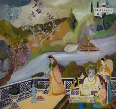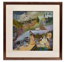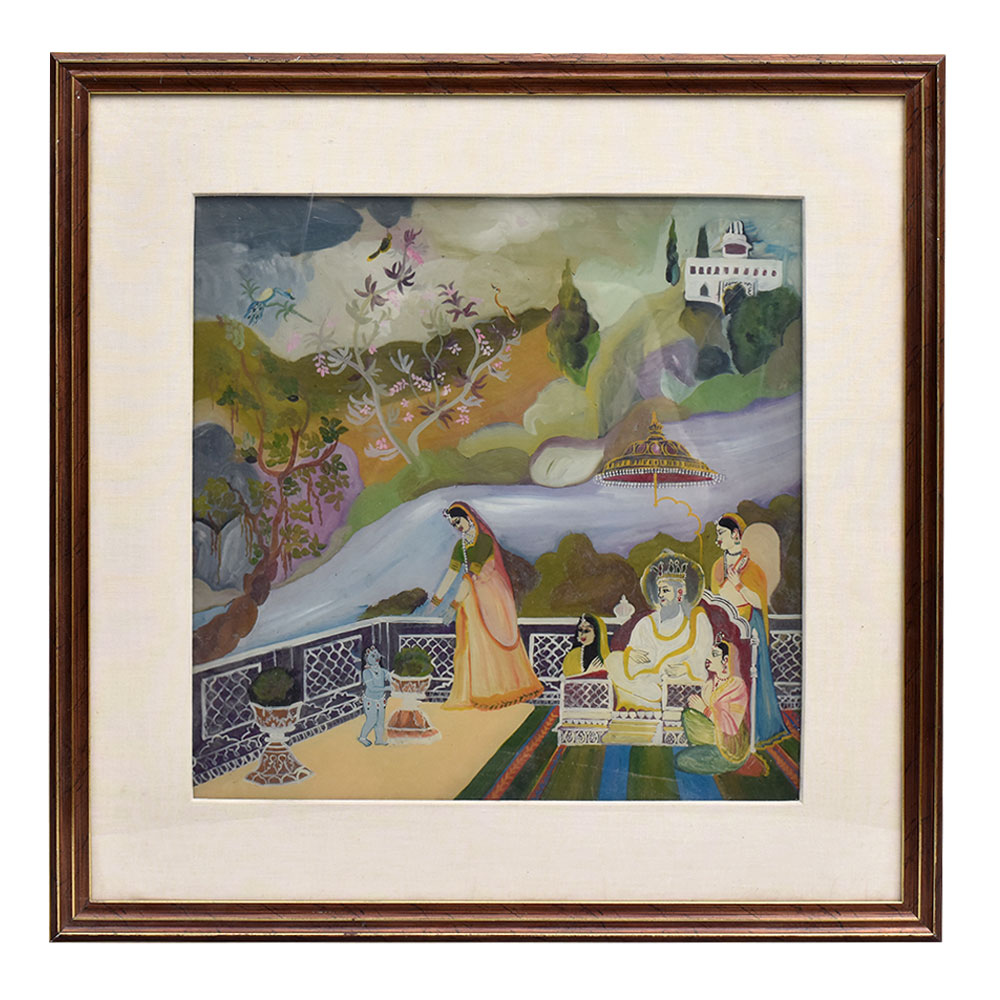 This breathtaking artwork invites you to bask in the celestial grace and timeless charm of the young Krishna and his doting mother. Let this divine scene transport you to the serene Himalayan landscapes that inspired its creation, igniting a sense of wonder, reverence, and profound peace. Whether displayed in your home, office, or meditation space, this painting will become a treasured focal point, reminding you of the transcendent love that flows between the divine and the human.