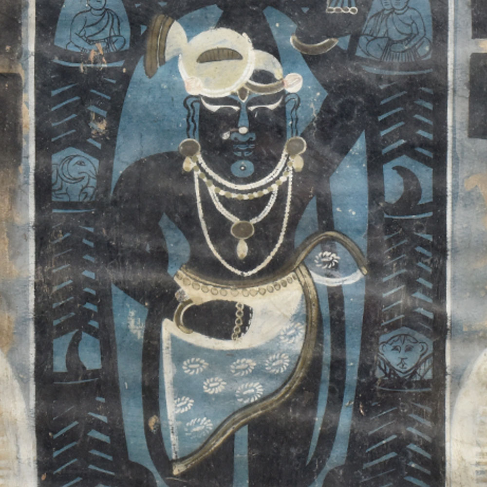 This painting is not just a work of art, but a gateway to the captivating world of Hindu mythology and spirituality. Immerse yourself in the serene gaze of Lord Krishna Ji, and allow his benevolent presence to inspire and uplift your soul. Whether you're a devotee or simply appreciate the beauty of fine art, this painting is a must-have addition to your home or sacred space. Elevate your living or meditation space with the enchanting presence of Lord Krishna Ji. This painting is a true masterpiece that will leave a lasting impression on all who behold it, serving as a constant reminder of the divine beauty and wisdom that permeates our world.