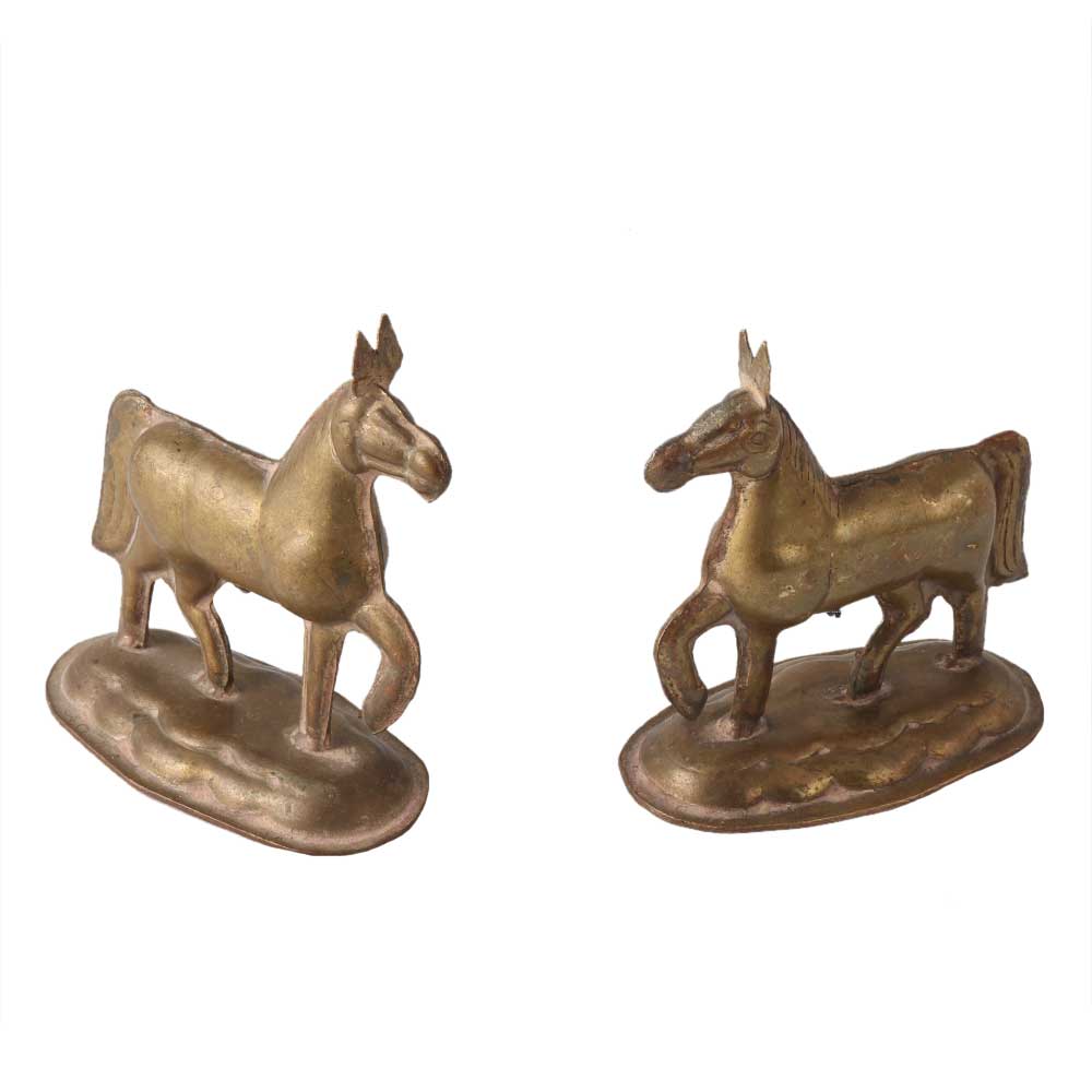 • Pair Of Brass Raised Up Horses Statues