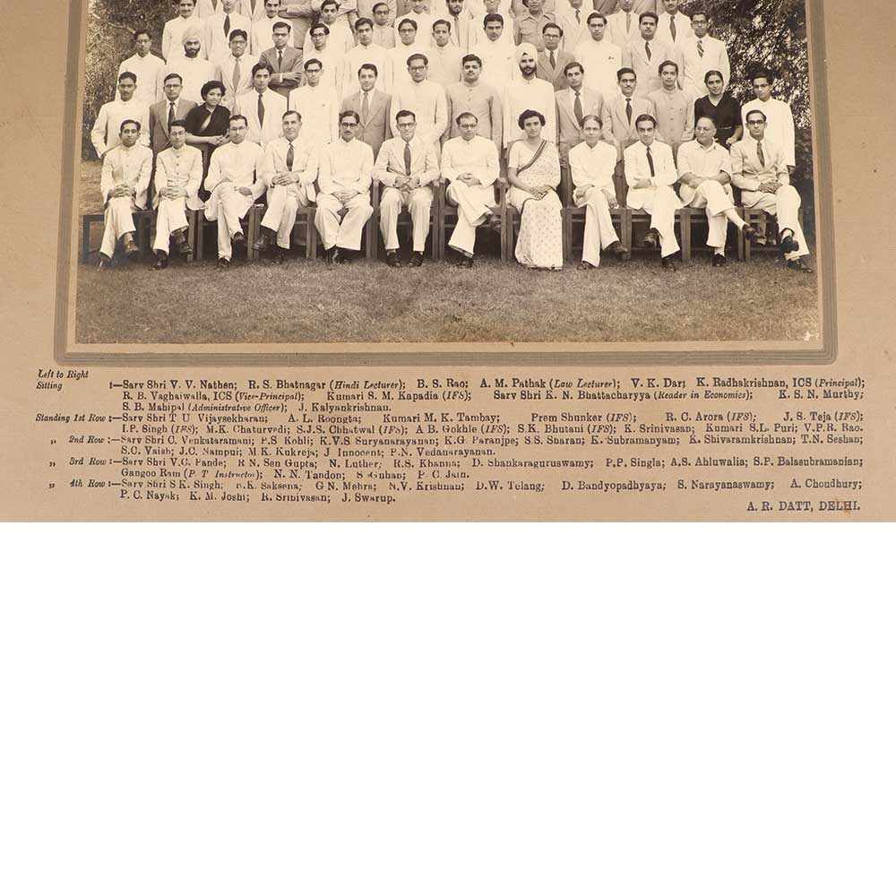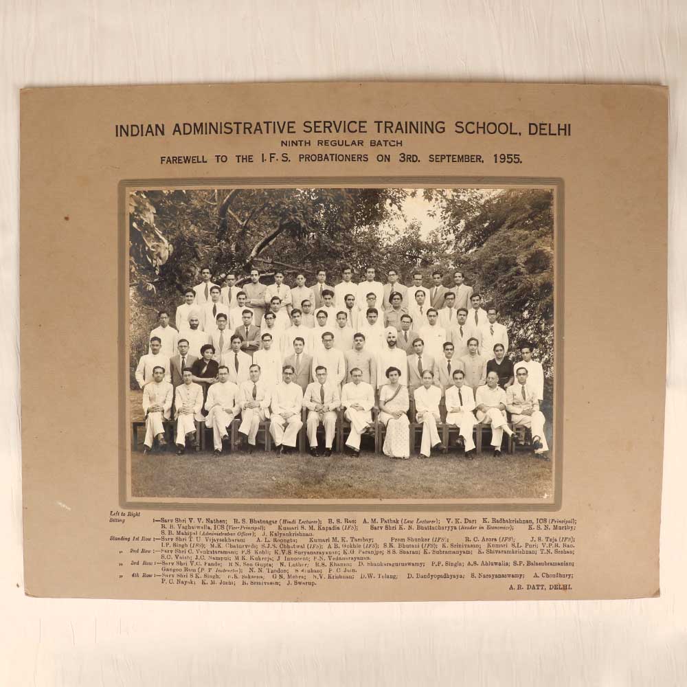 Step back in time with this one-of-a-kind vintage black and white photograph that captures a pivotal moment in India's history. "Indian Administrative Service Training School, Delhi" gives you a glimpse into the early days of nation building as a group of India's future leaders pose together at the prestigious training academy. This is the "Ninth Regular Batch" of civil servants, smiling brightly in their crisp white uniforms as they bid "Farewell to the I.F.S. Probationers on 3rd September, 1955". The lighthearted camaraderie of these young pioneers jumps off the page, transporting you to a critical era when India's brightest minds came together to shape the future. See the hope and promise in their eyes, united by a shared duty to serve their country. This is more than just a photo - it's a powerful symbol of the spirit that built modern India. For history buffs, this vintage photograph is a must-have for your collection. Display it proudly and let the inspiring image of national unity spark conversation. A one-of-a-kind historical artifact with rich cultural significance.