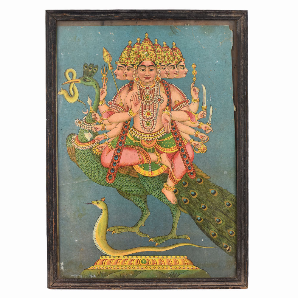 - Paper print on hardboard of Lord Kartikeya on peacock