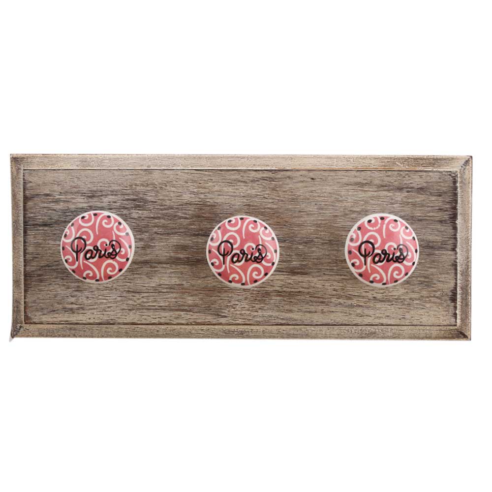 Paris Pink Flat Wooden Hook. A Perfect Complement to the Soft Tone of the Wood are these White Traditional Hat Coat Hook Made of Genuine Porcelain and Brass. It can be use to Hang Jewellery, Leashes, Towels, Scarves, Light Weight Sweaters, Caps Etc.