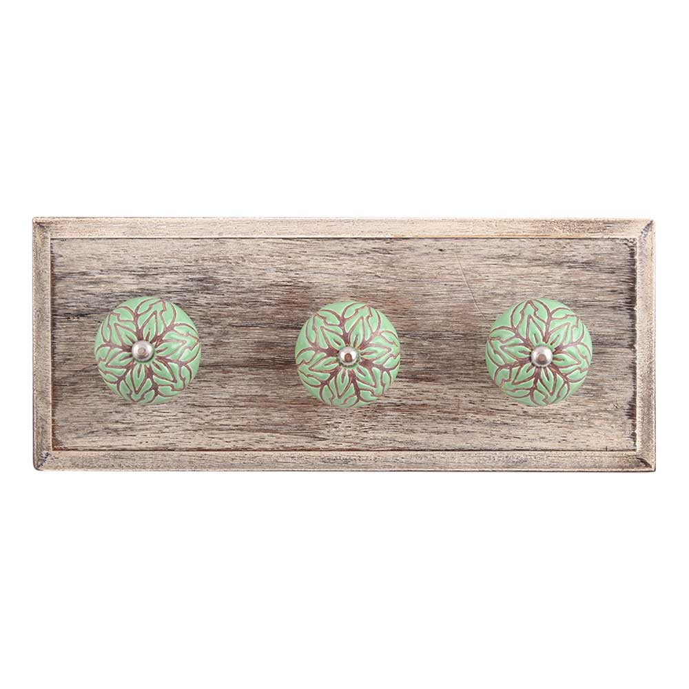 Pea Green Amarylis Etched Ceramic Wooden Hooks