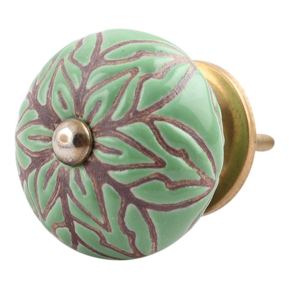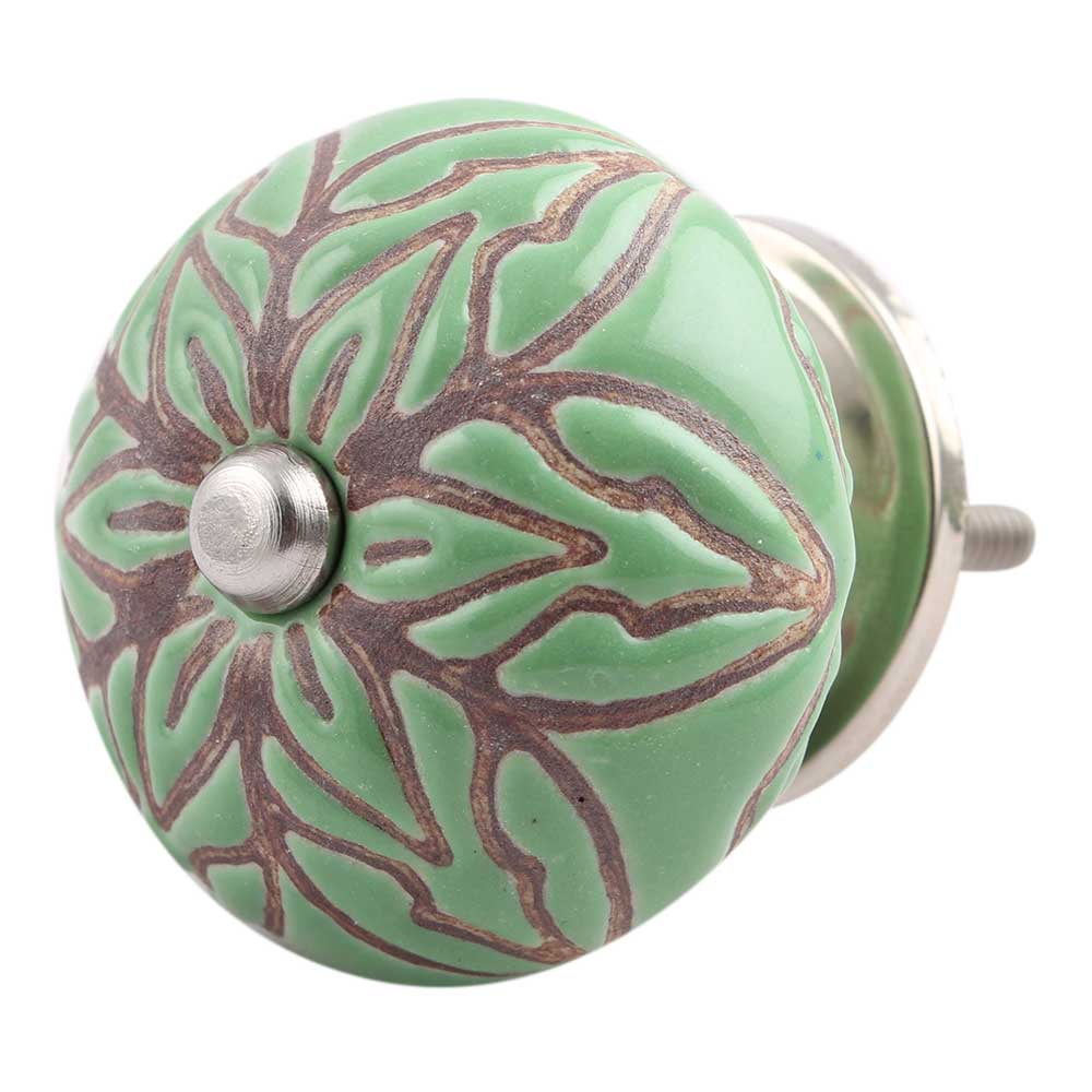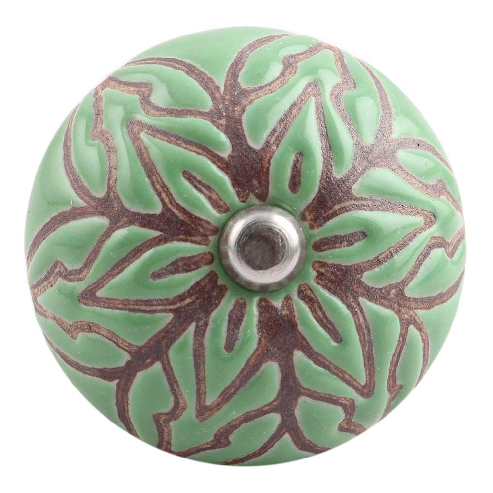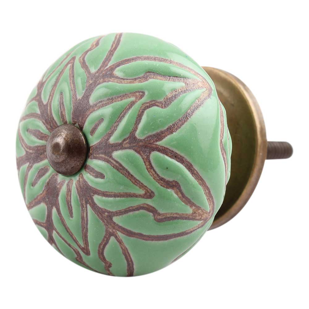 Pea Green Amarylis Floral Etched Ceramic Drawer Knob