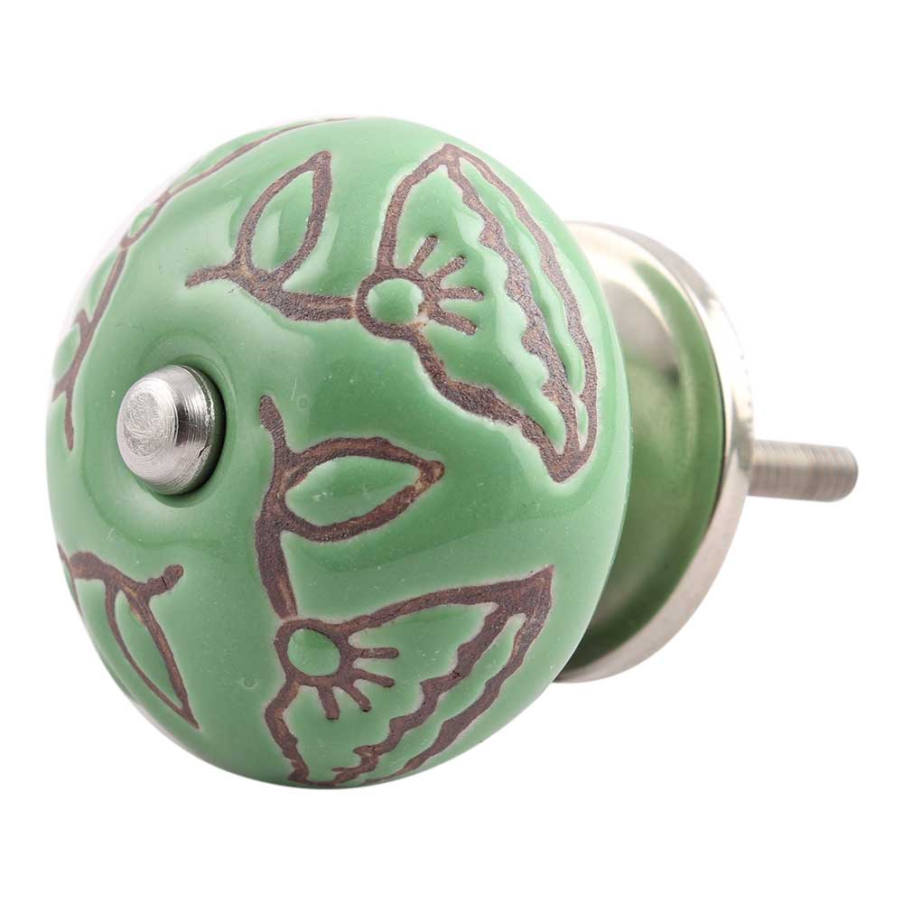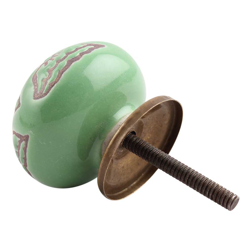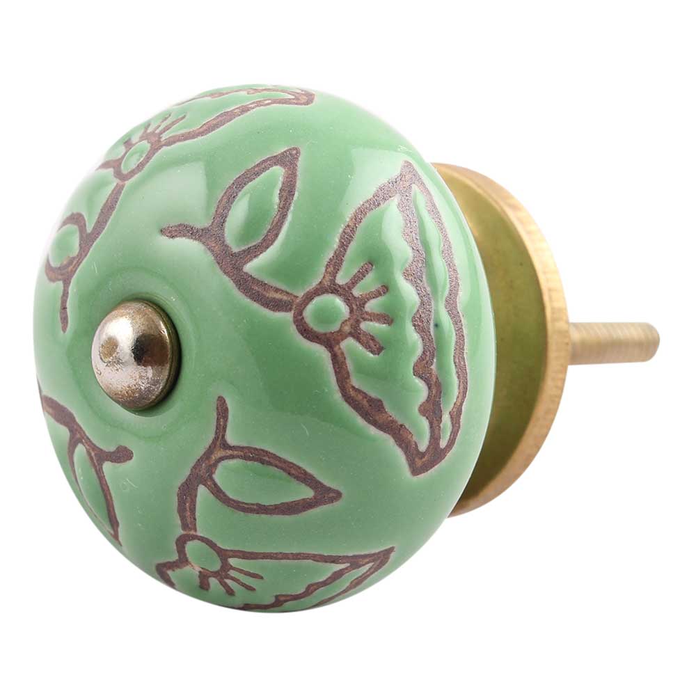 Pea Green Calla Lily Brown Etched Ceramic Cabinet Knob
