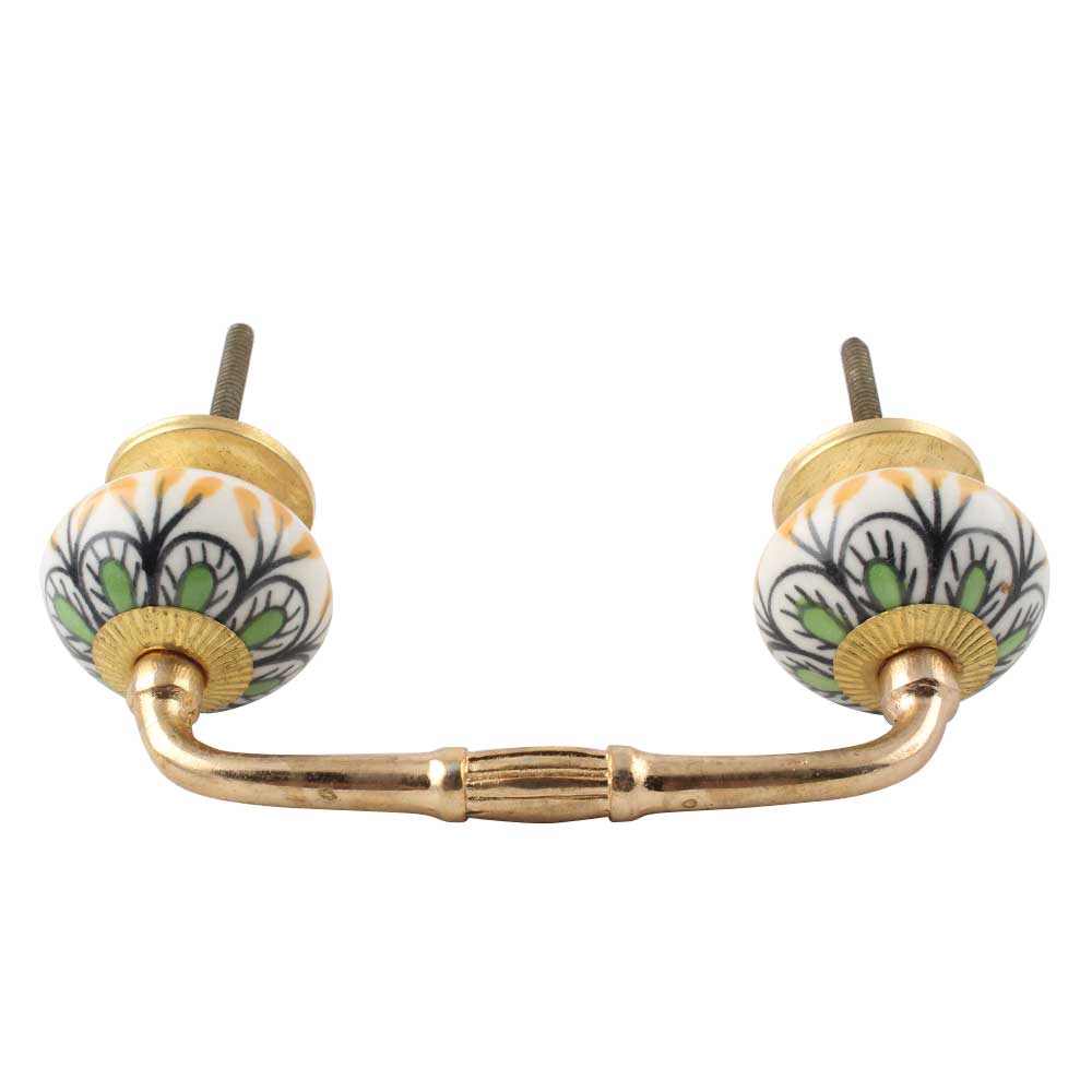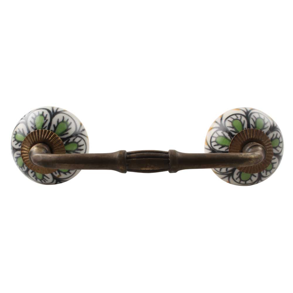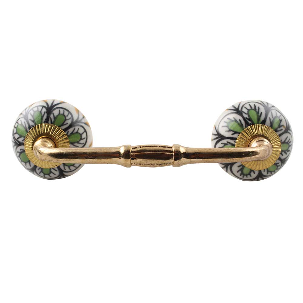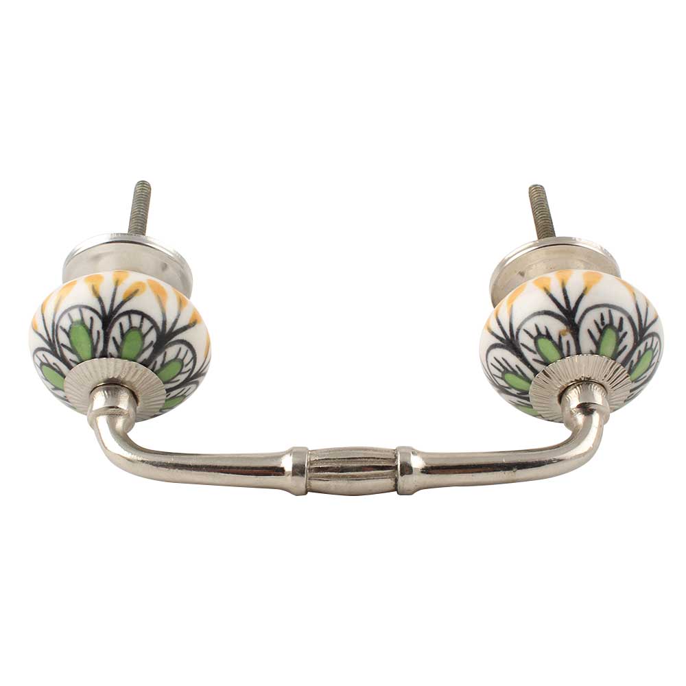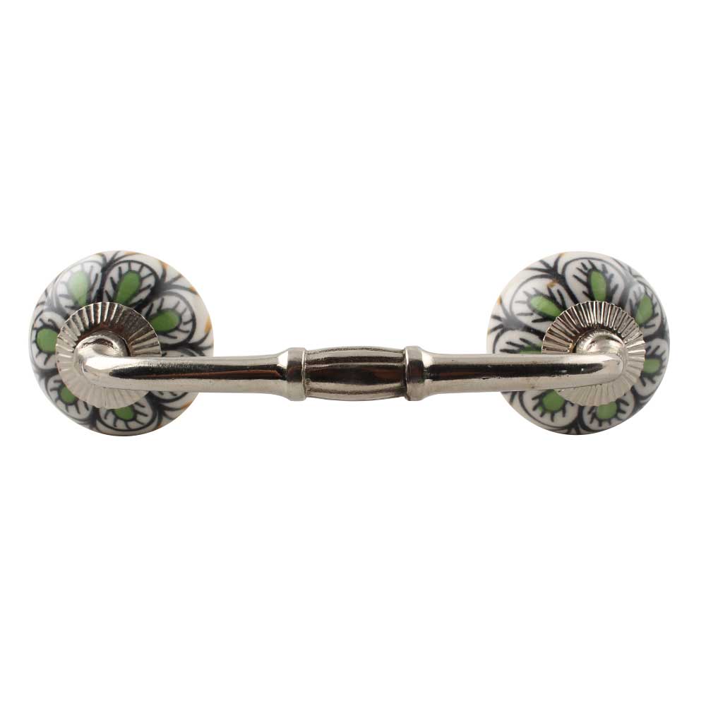 Pea Green Ceramic Floral Bridge Handle. Ideal for Drawer, Dresser, Cabinet, Wardrobe, Cupboard and Almirah etc.