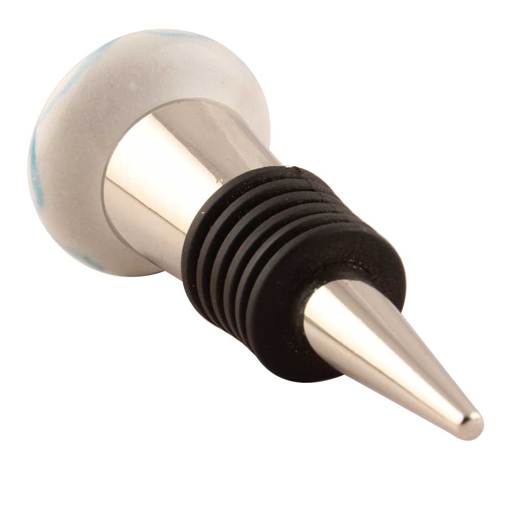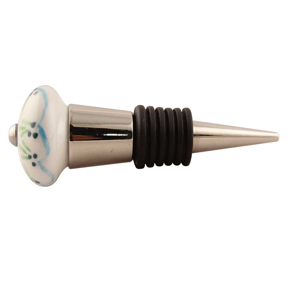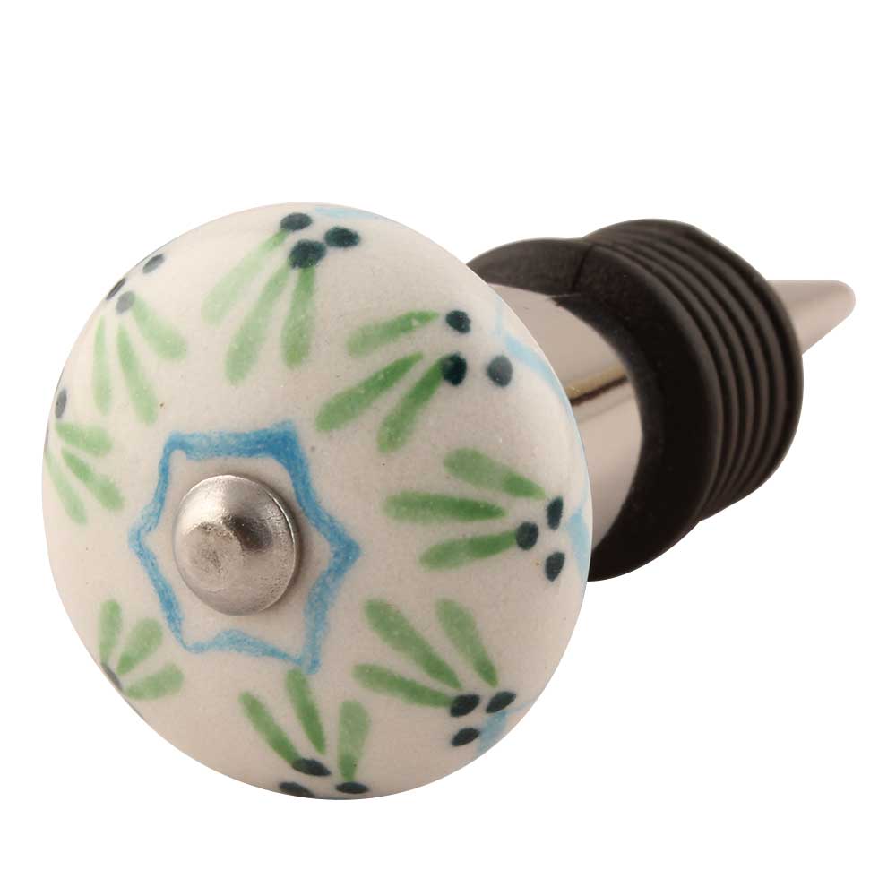 Pea Green Ceramic Floral Wine Stopper. Zinc Alloy Wine Bottle Stopper with Attractive Jute Bag Packaging.