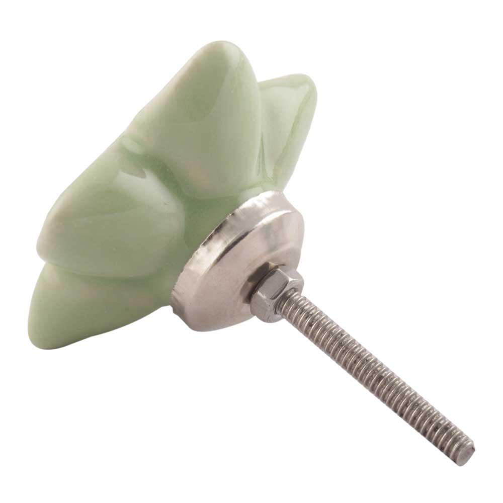Enhance your furniture with the Pea Green Ceramic Flower Cabinet Knob. This elegantly crafted knob showcases a charming flower shape in a gentle pea green shade, adding a fresh and vibrant touch to your cabinets, drawers, and dressers. It's an excellent way to introduce a splash of color to any room, seamlessly fitting into various home decor styles.