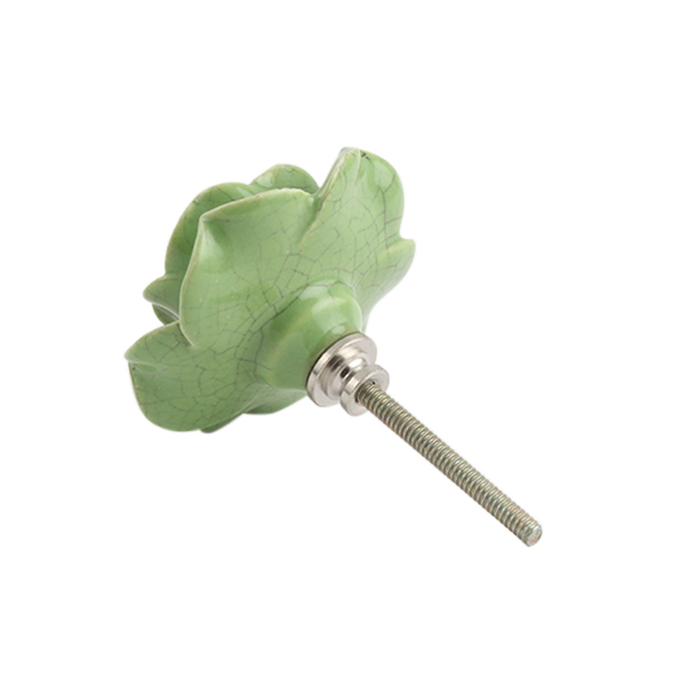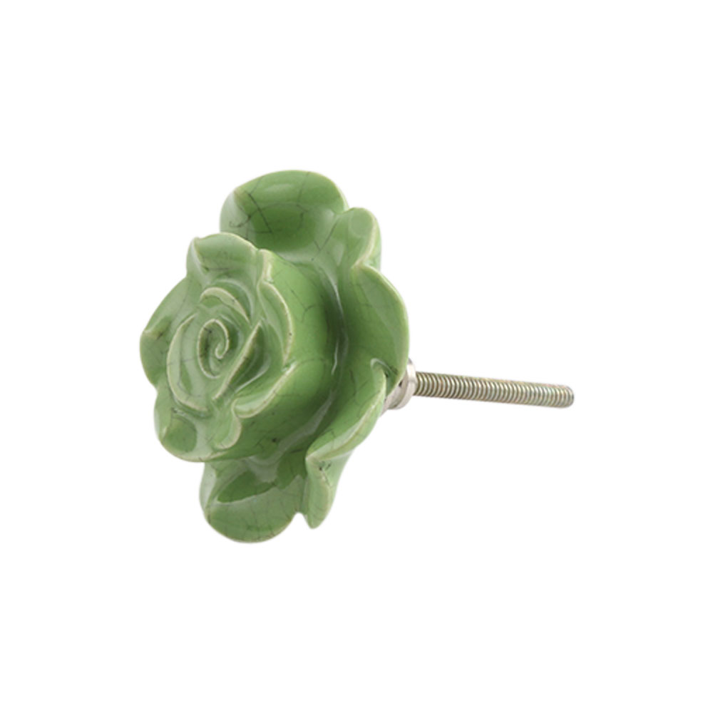 Pea Green Crackle Rose Ceramic Dresser Knob