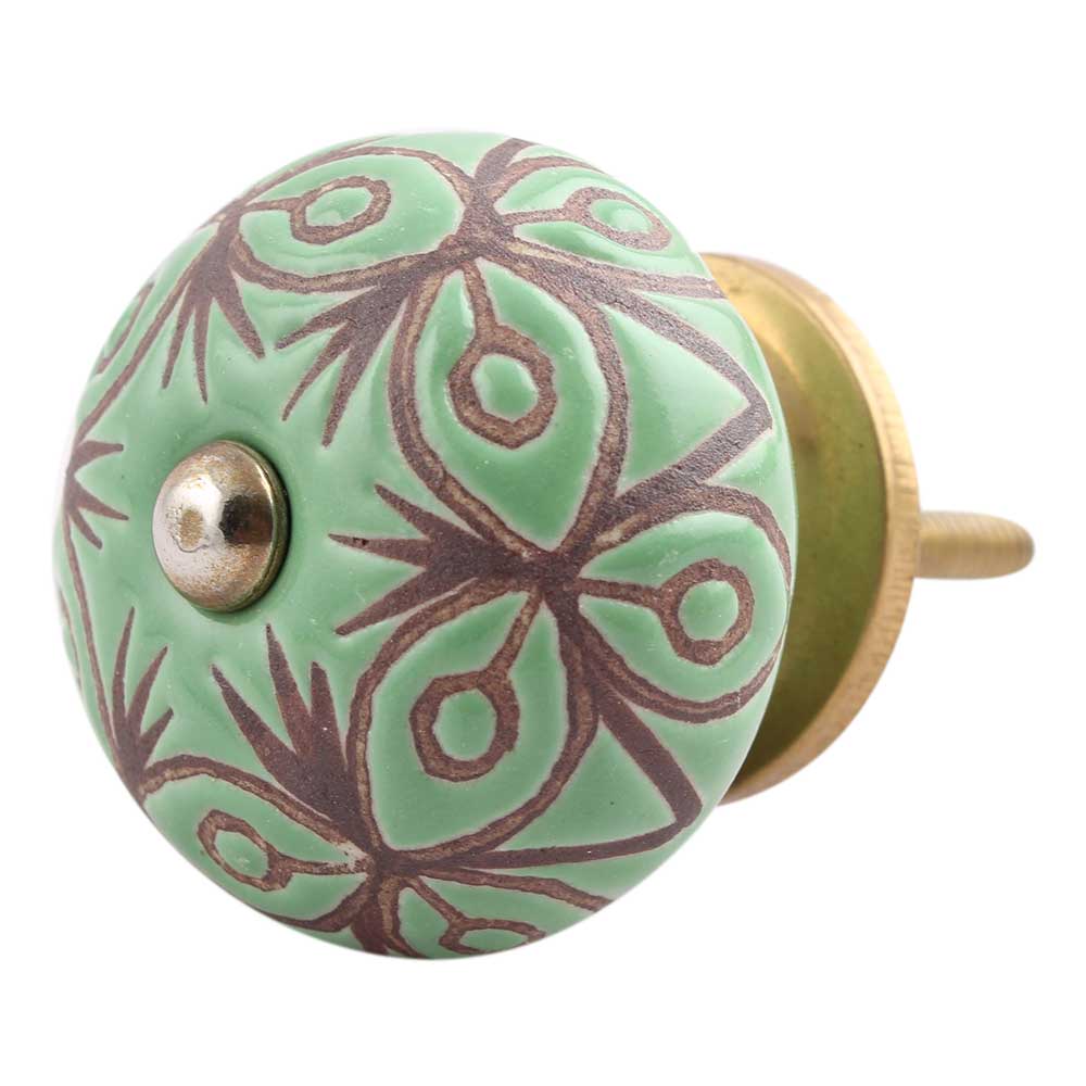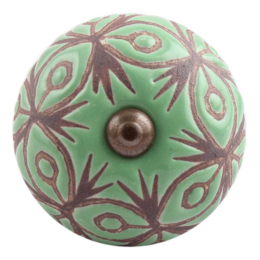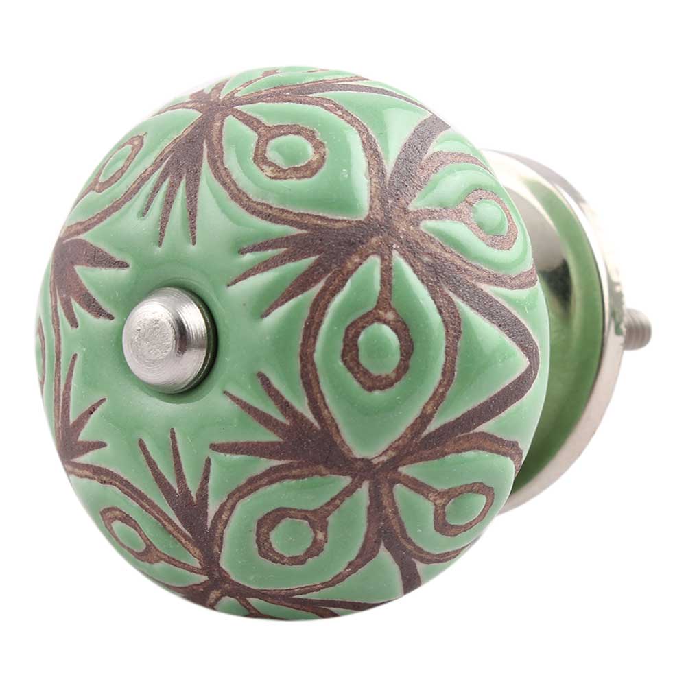 Pea Green Etched Ceramic Floral Dresser Knob Online