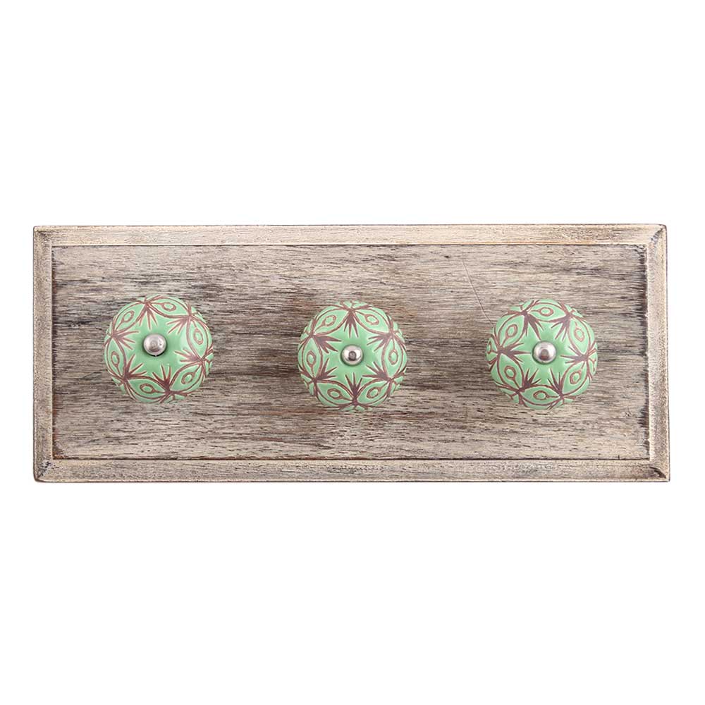 Pea Green Etched Ceramic Wooden Hook. A Perfect Complement to the Soft Tone of the Wood are these White Traditional Hat Coat Hook Made of Genuine Porcelain and Brass. It can be use to Hang Jewellery, Leashes, Towels, Scarves, Light Weight Sweaters, Caps Etc.