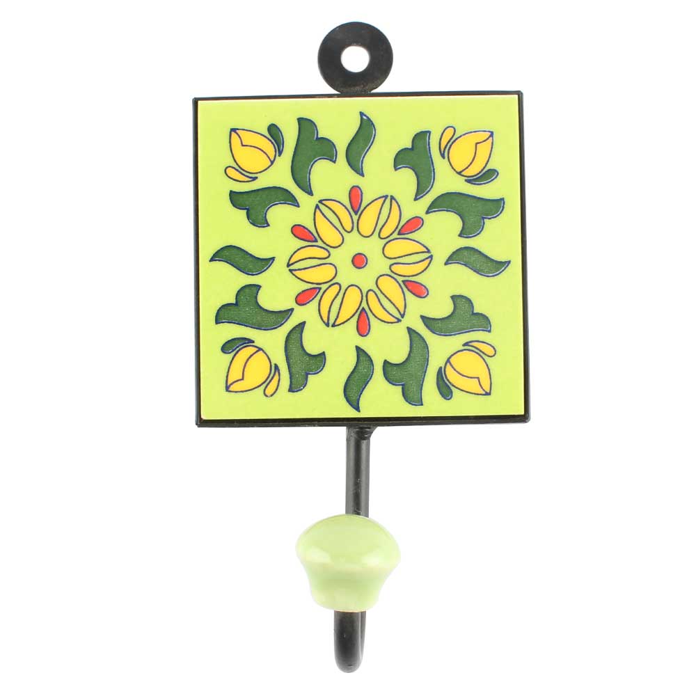 Pea Green Floral Ceramic Tile Wall Hook