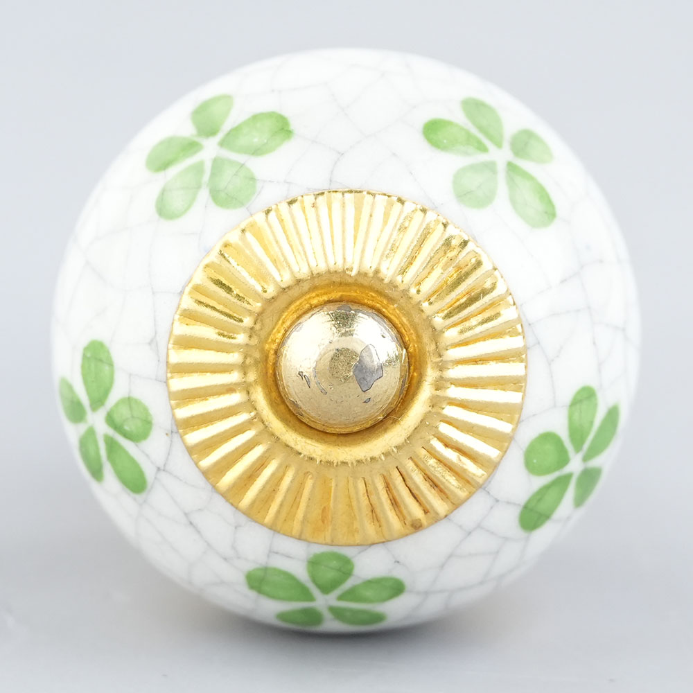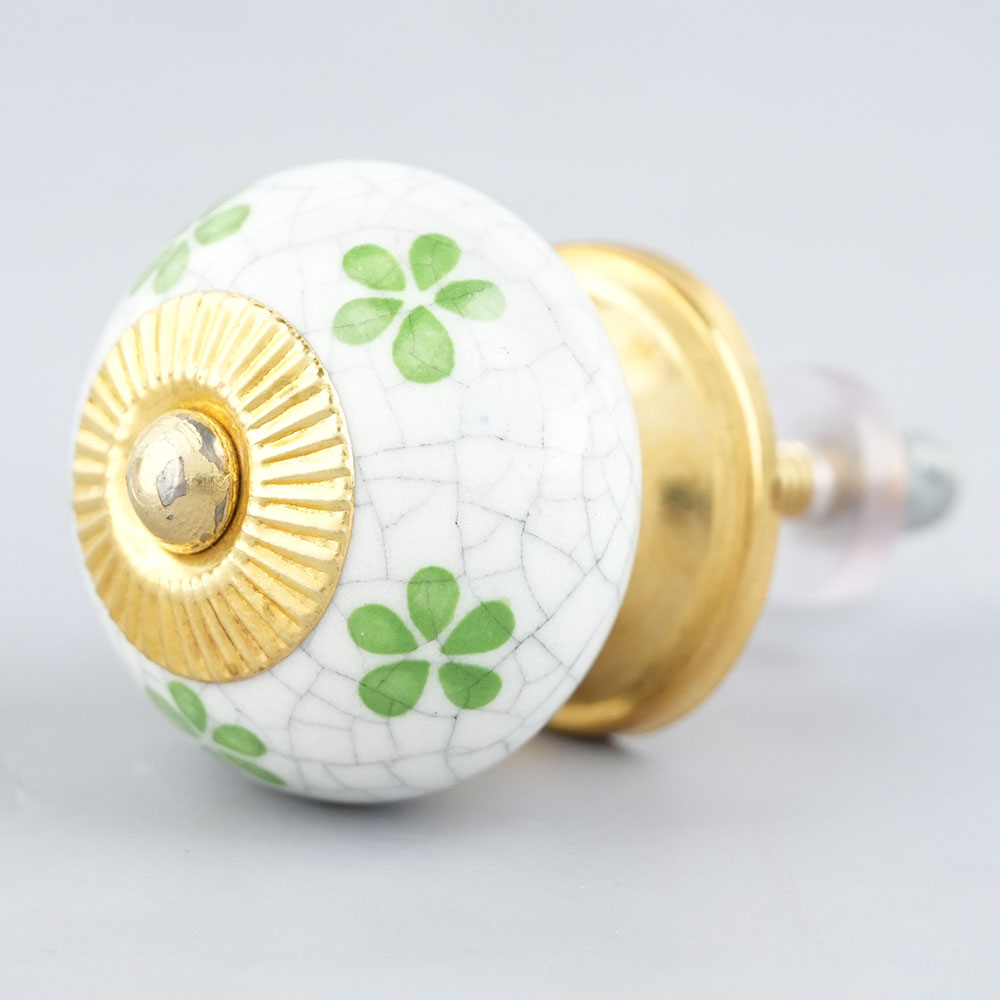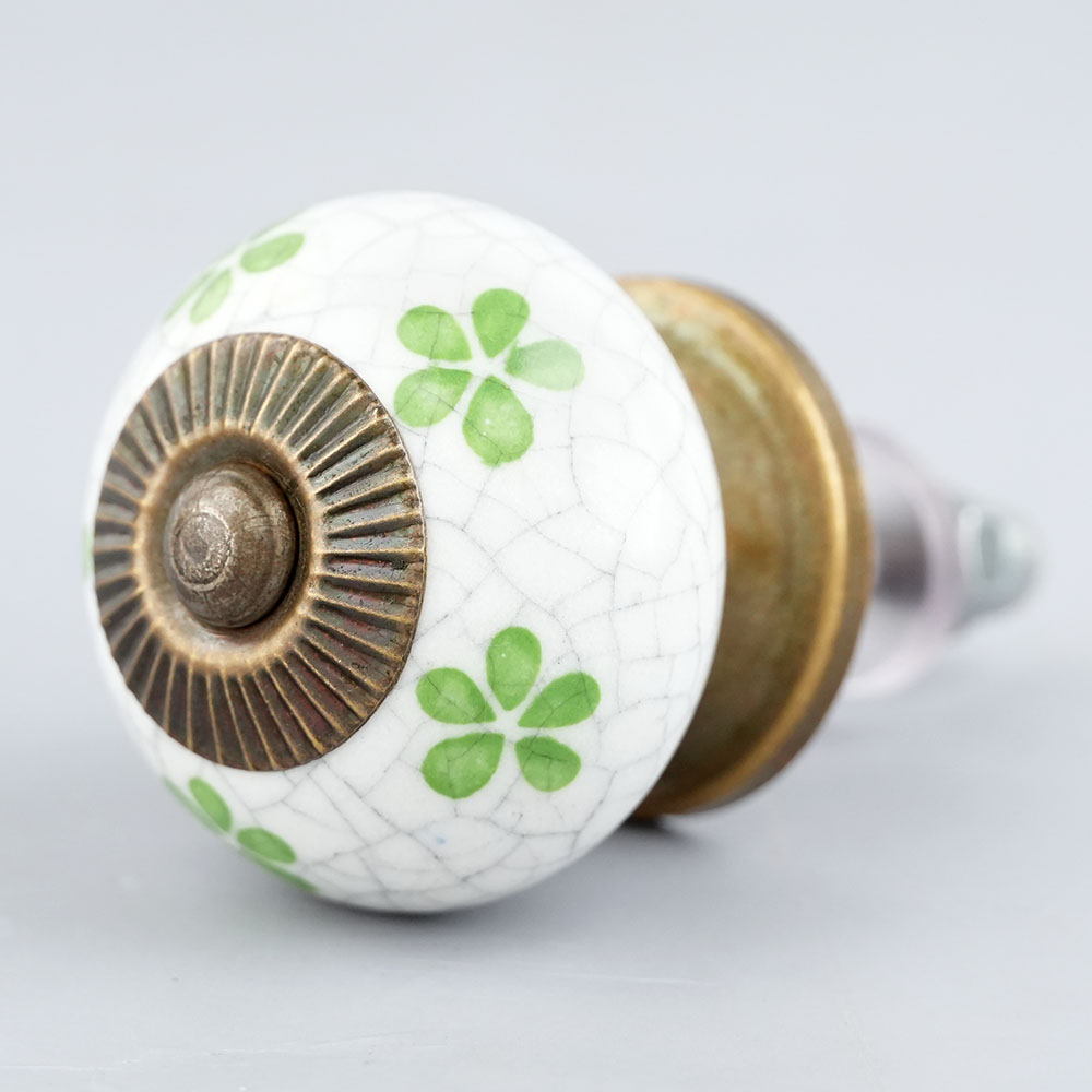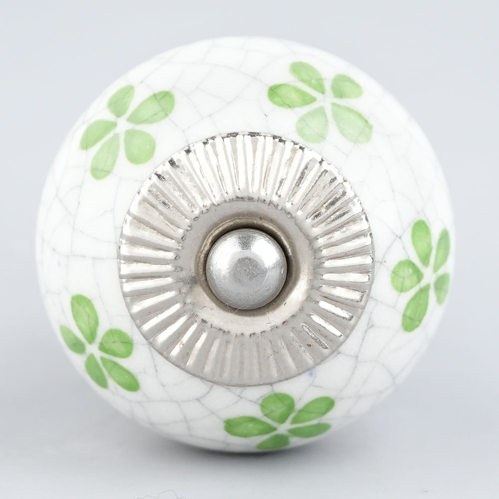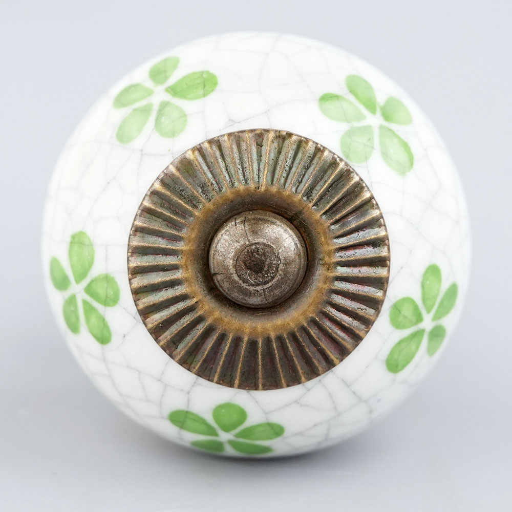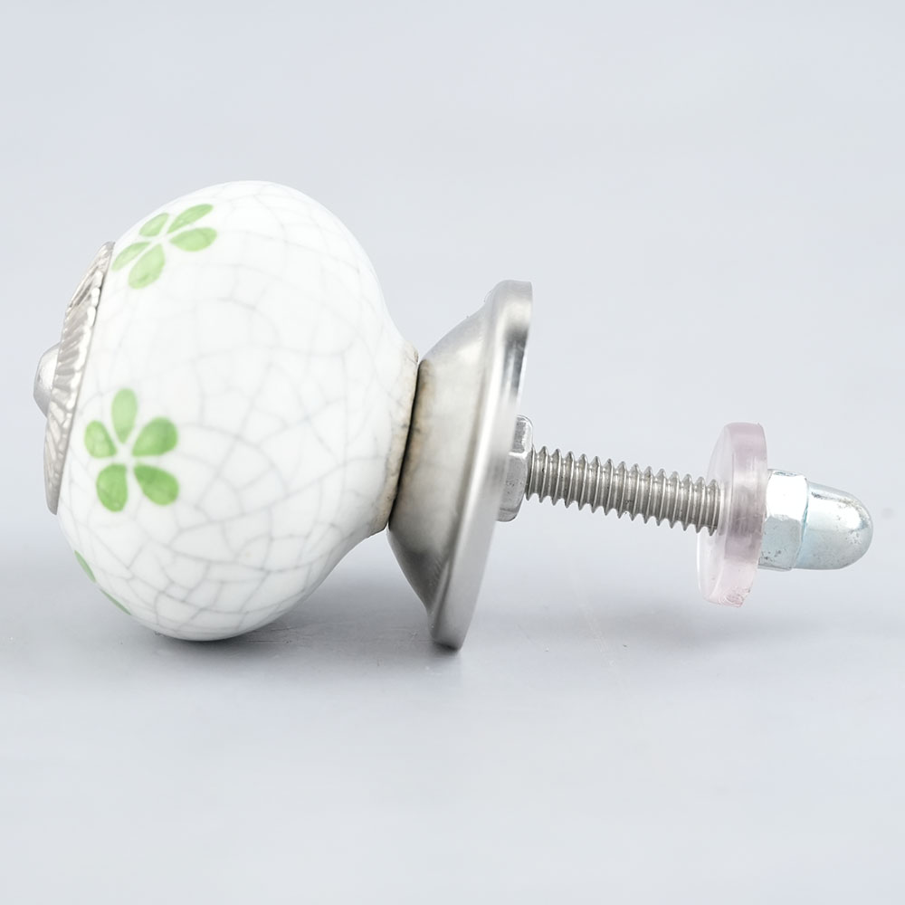 Pea Green Floral Crackle Ceramic Dresser Knob