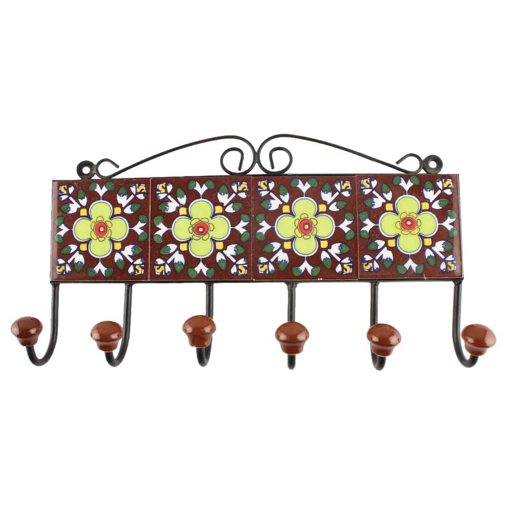 Pea Green Flower Ceramic Tile Hook. When Put on Wall or Cabinet It is An Art in Itself. The Metal Part of this Hook is Black Powder Coated.