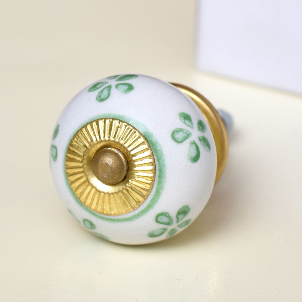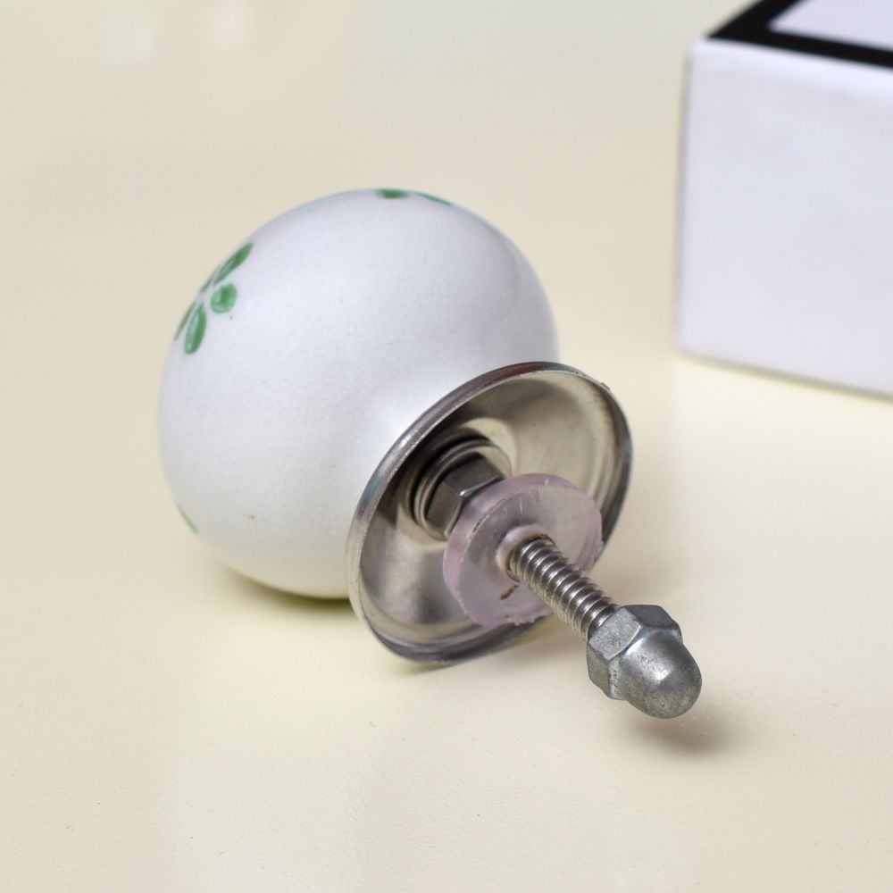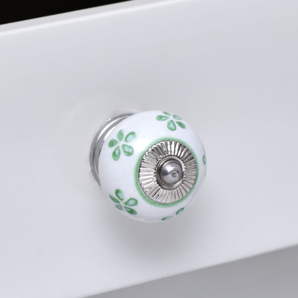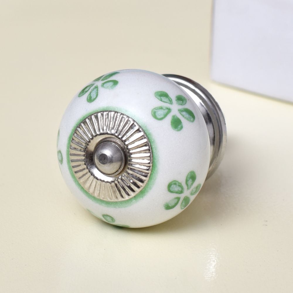 Pea Green Flower Ceramic Round Knob. Ideal for kitchen cabinets, kitchen drawers, dining room, bed room, chest drawers, dressing tables, almirah