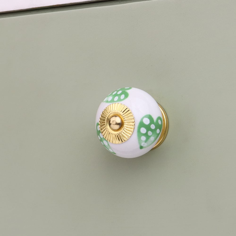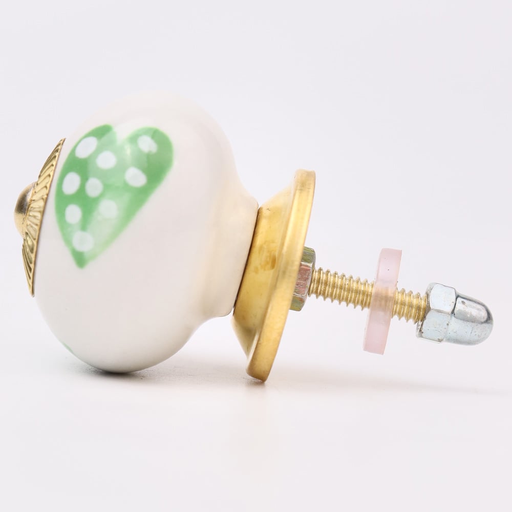 Pea Green Heart ceramic knob. Ideal for kitchen cabinets, kitchen drawers, dining room, bed room, chest drawers, dressing tables, almirah